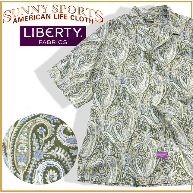 SUNNY SPORTS × LIBERTY / サニースポーツ × リバティ PRINTED BOX SHIRTS 日本製 半袖シャツ ペイズリー Abbey Road アビーロード ワークシャツ オリーブ | 春夏