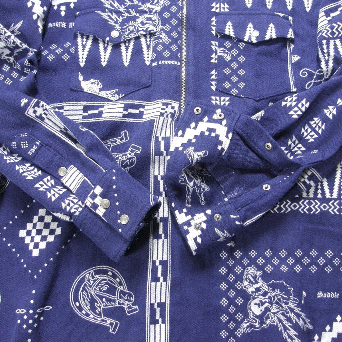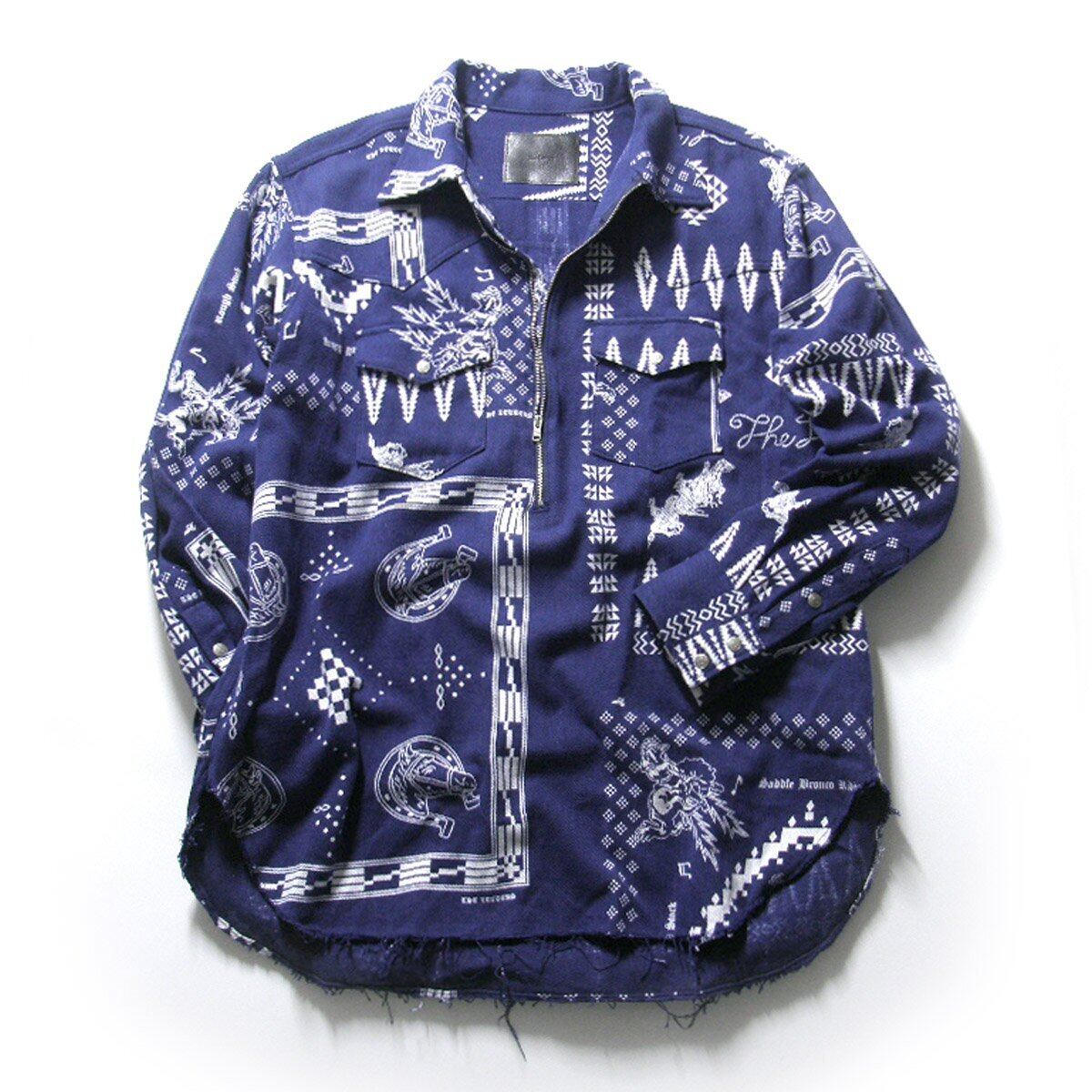 ノスタルジックな味わいがあるネイティブ柄&ロデオカウボーイのハーフジッププルオーバーシャツ