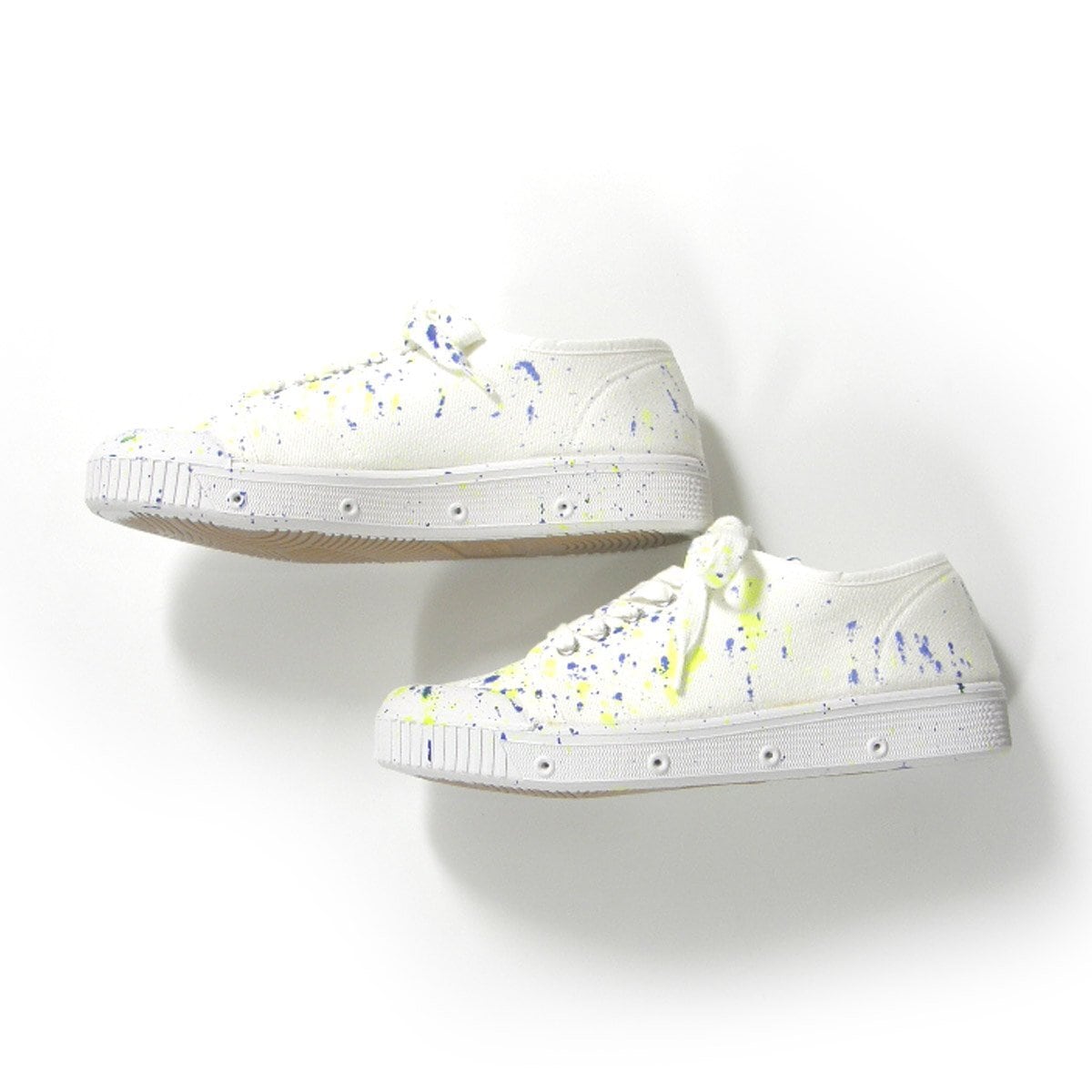 シンプルでエレガントなローカットデザインに、1つひとつ手作業で仕上げたランダムなペイントが映える別注スニーカーです