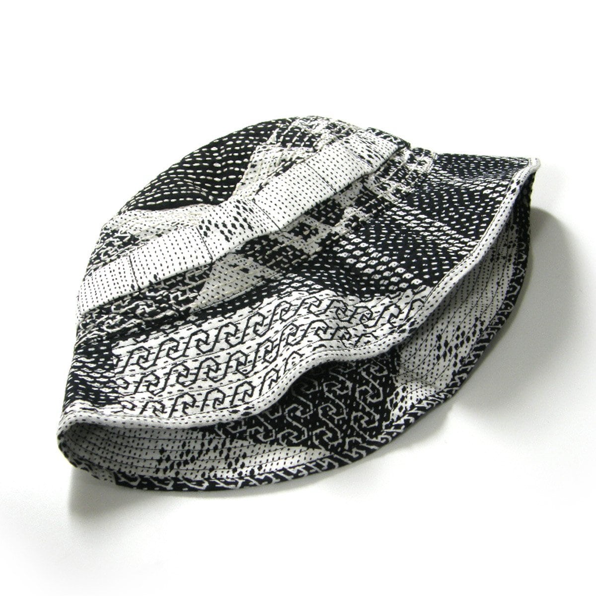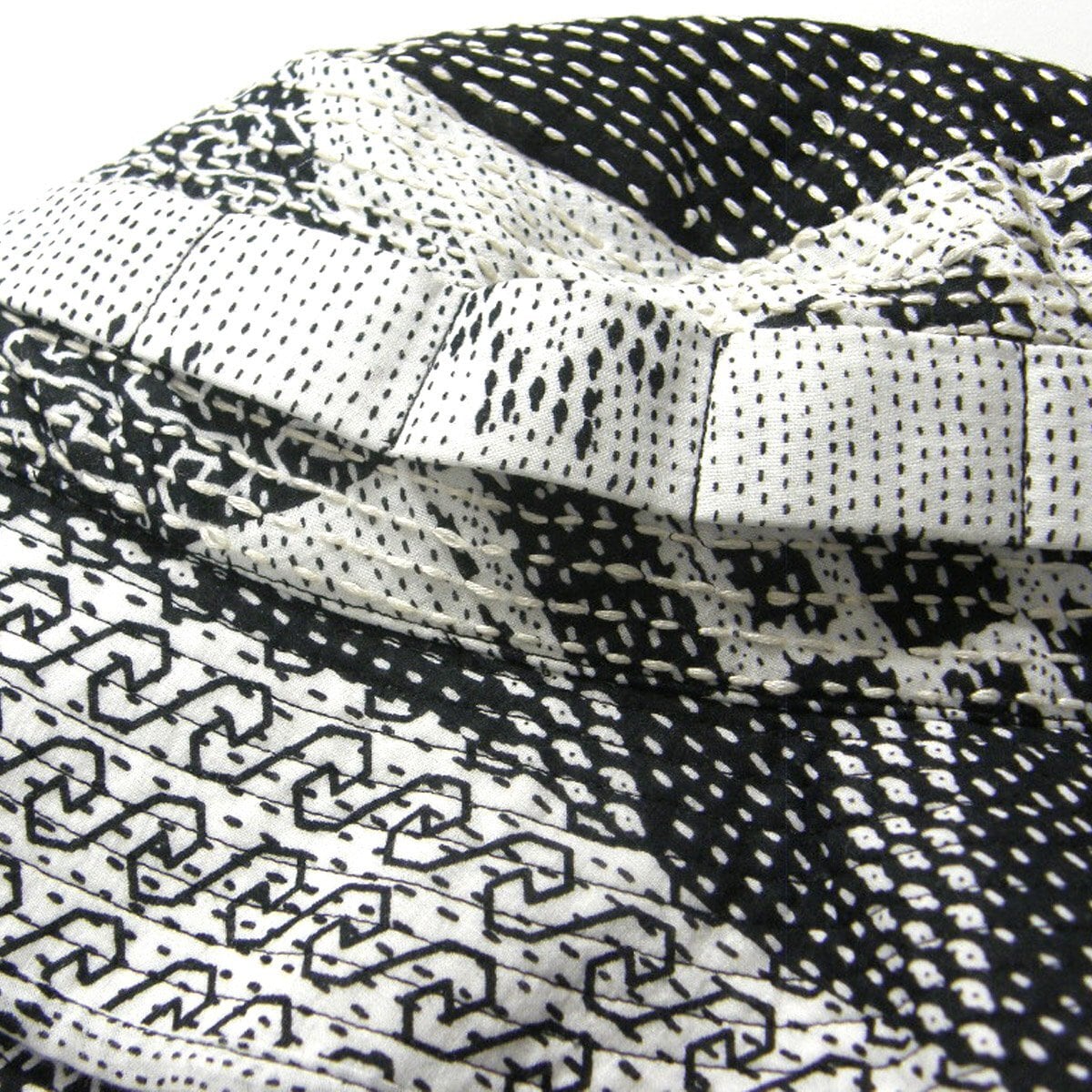 コレクションで使っていた様々な端切れをパッチワーク生地にした物に更に総KANTHA(刺し子)を手刺繍で施したバケットハット
