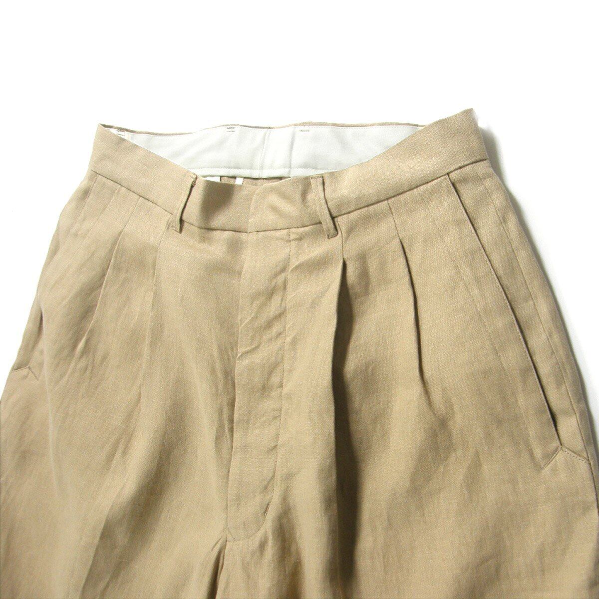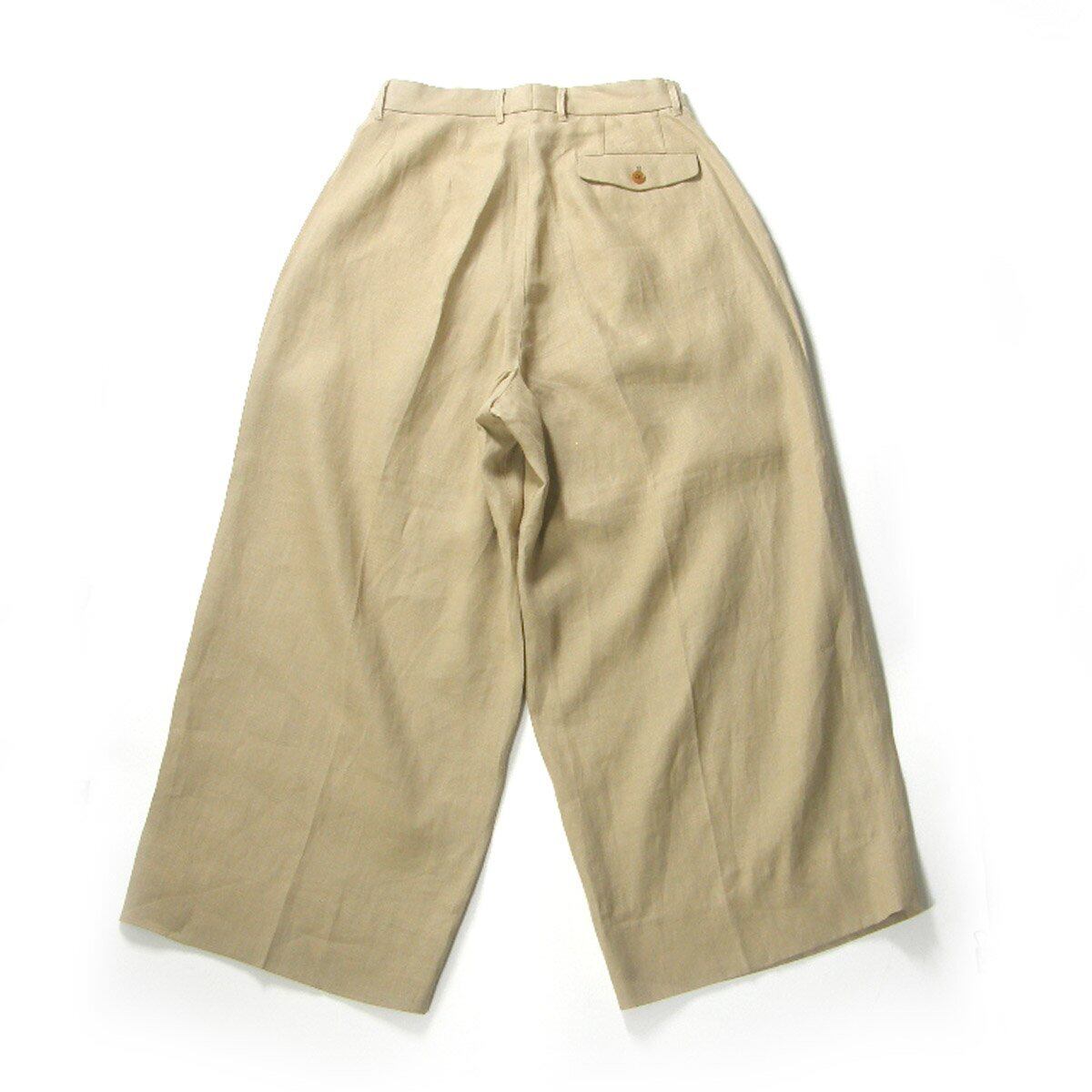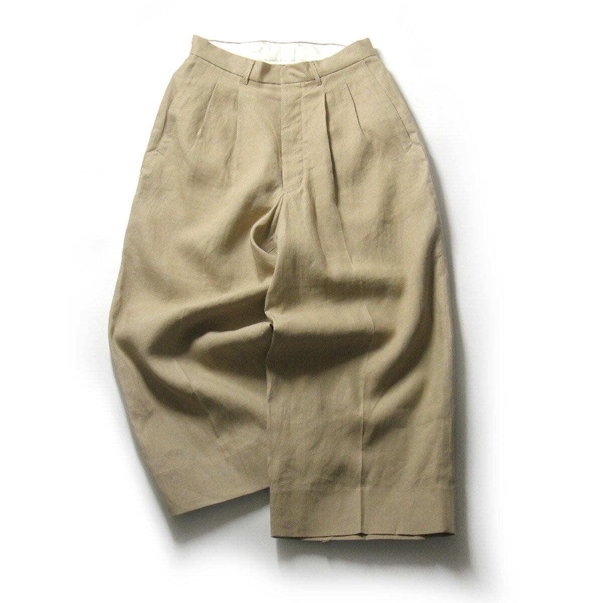 素材は強度のあるヘンプ素材をワイドシルエットのドレープを生かせるよう、出来る限り柔らかくナチュラルに