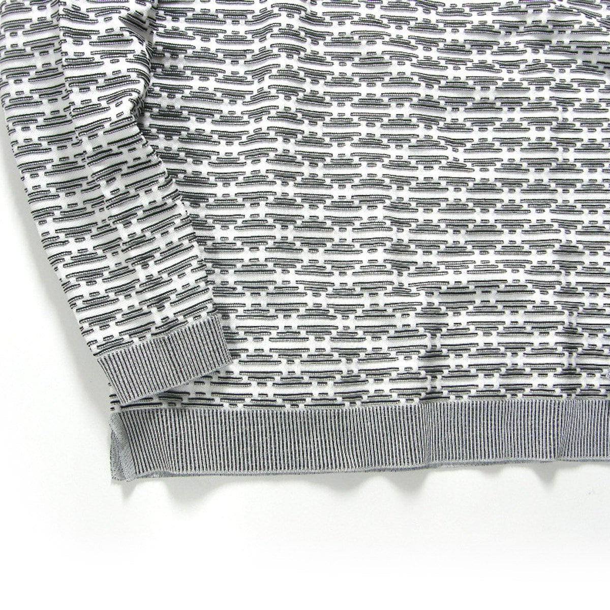 高収縮ポリエステル糸を使用し、高密度に編みたてたジャカードニット