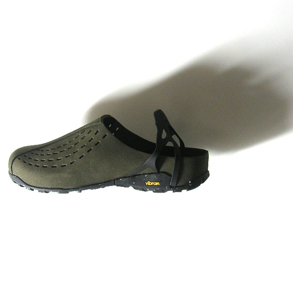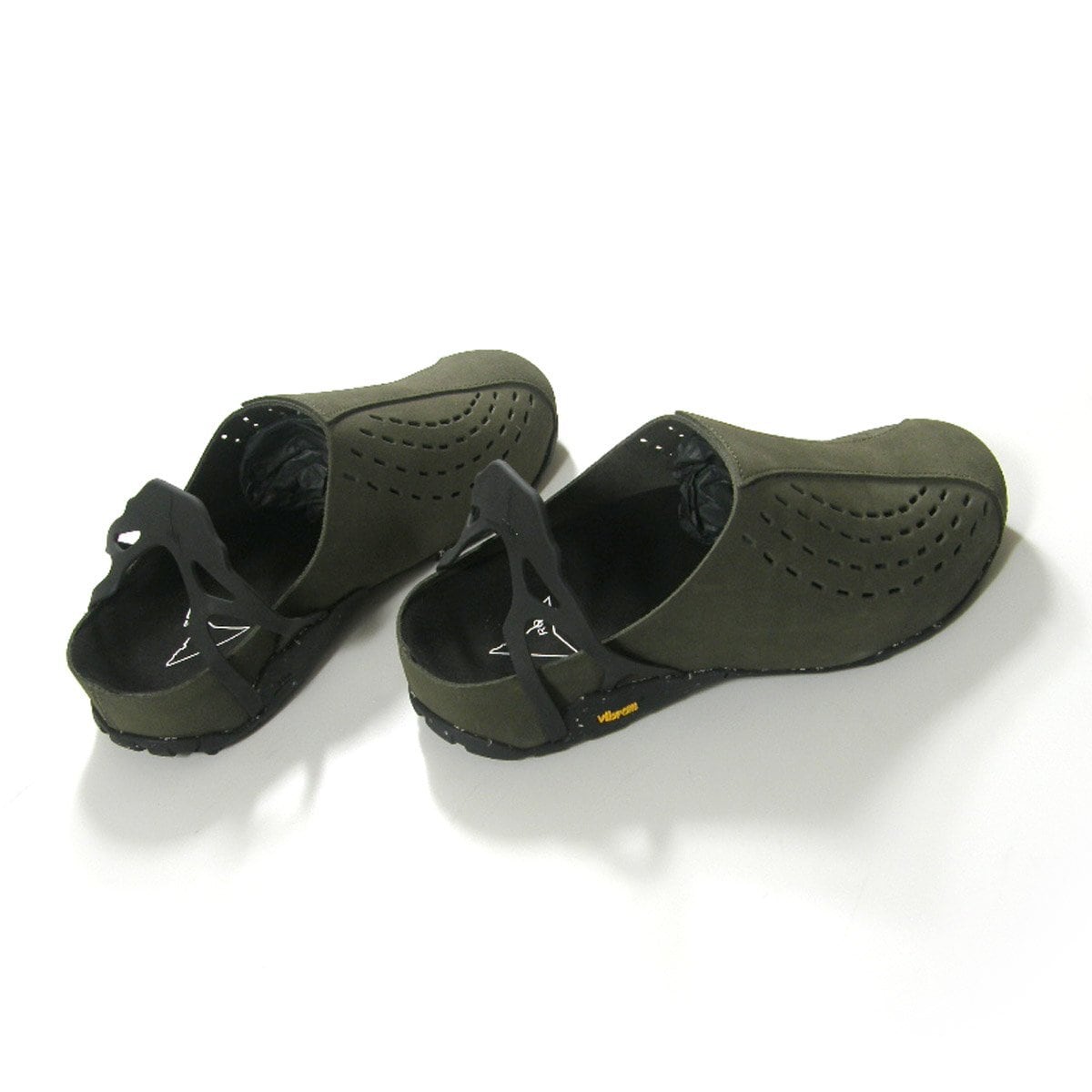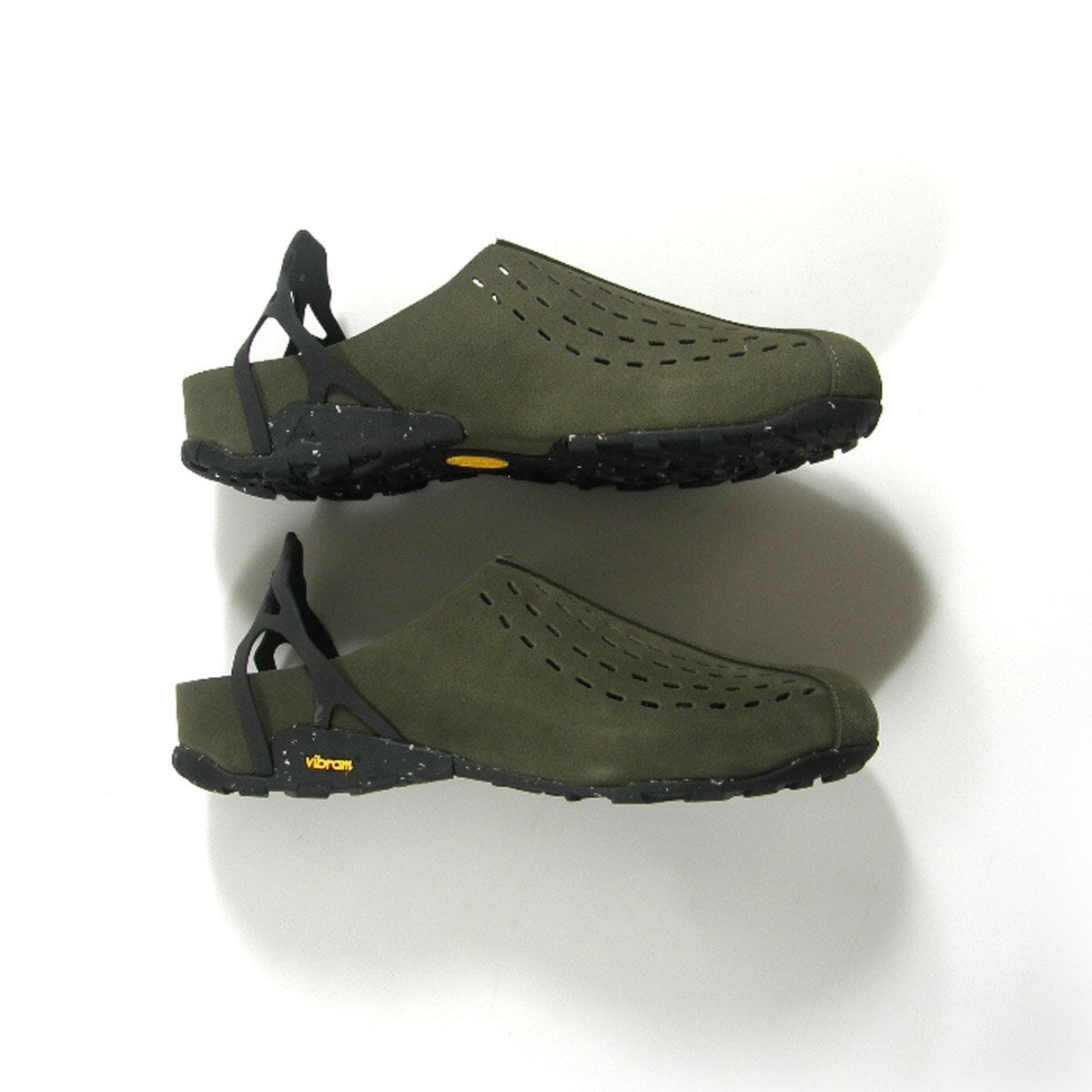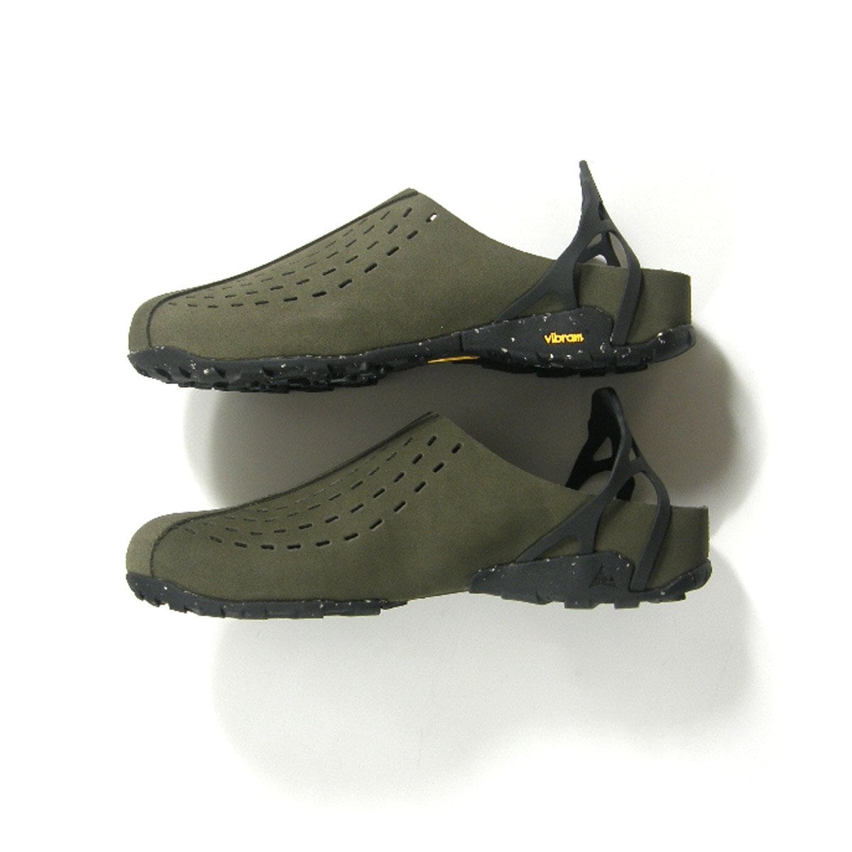 ラフなスエードのアッパーにはパンチングパターンが施され、通気性を高めるライニングはなく、30%以上のリサイクル・ラバーを使用したヴィヴィラム・エコステップ・ソールと組み合わせることで、荒れた地形でも快適な履き心地を実現