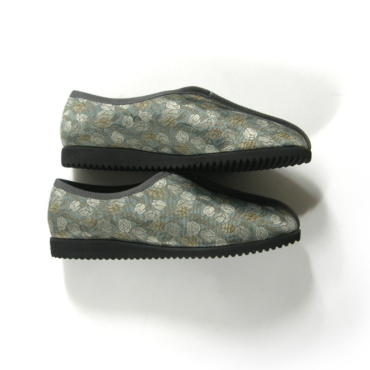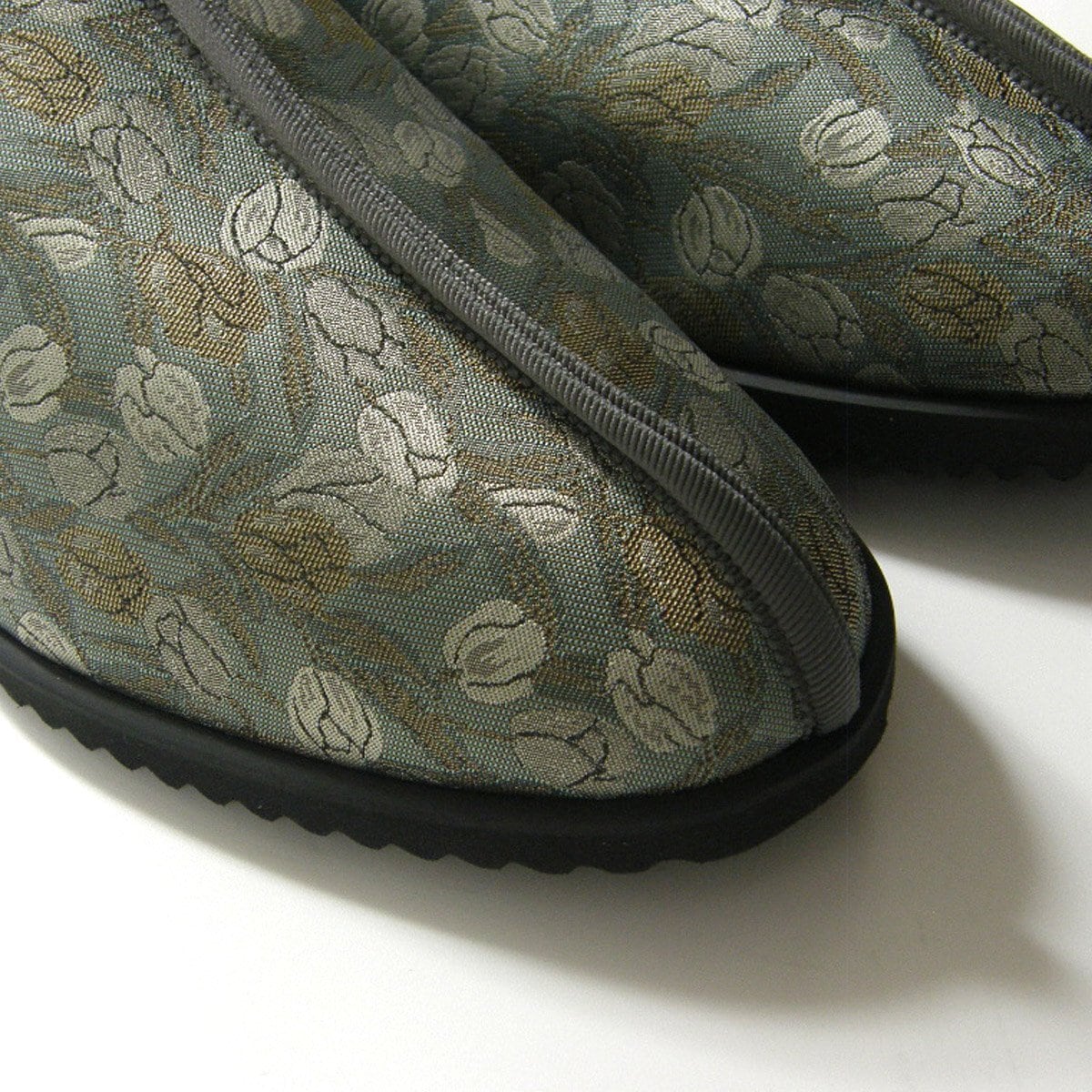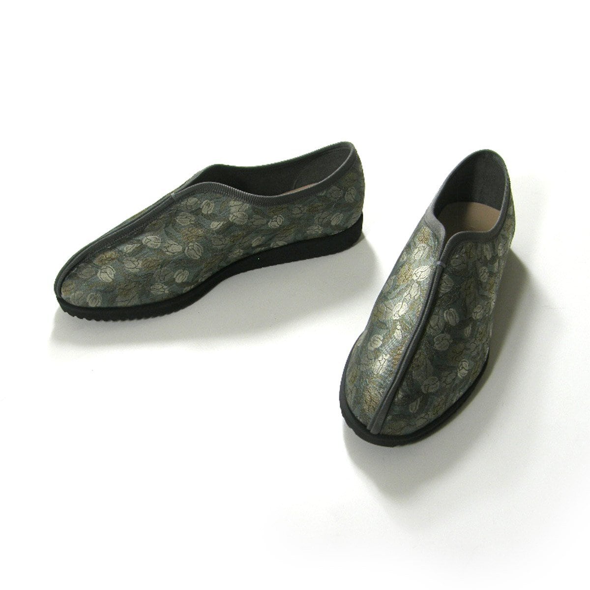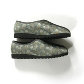 アッパーにネクタイ生地を使用し、裏打ちして張り感と強度を出しパイピングでまとめた上品なカンフーシューズ