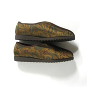 アッパーにネクタイ生地を使用し、裏打ちして張り感と強度を出しパイピングでまとめた上品なカンフーシューズ