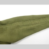 ケーブル編の凹凸で袖にTANGRAMのロゴ、バックにアイコンのパズルマークを表現しています