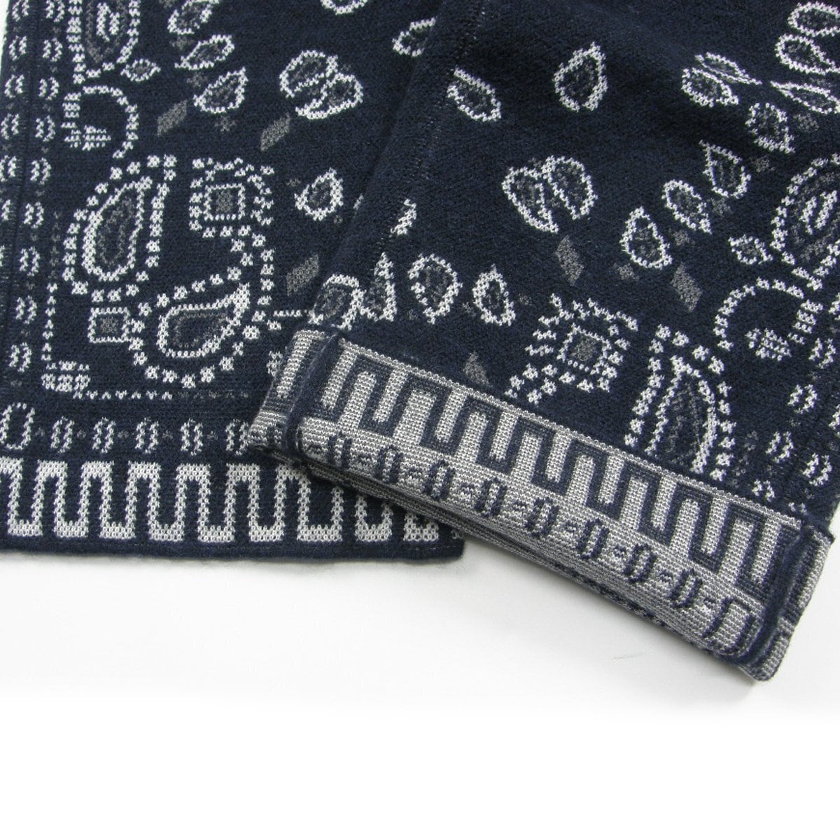 ALANUI / アラヌイ 厚手 ジャガード ウール ニット パンツ イタリア製 ジャガードニット バンダナパターン ペイズリー ネイビー 紺 グレー | 秋冬