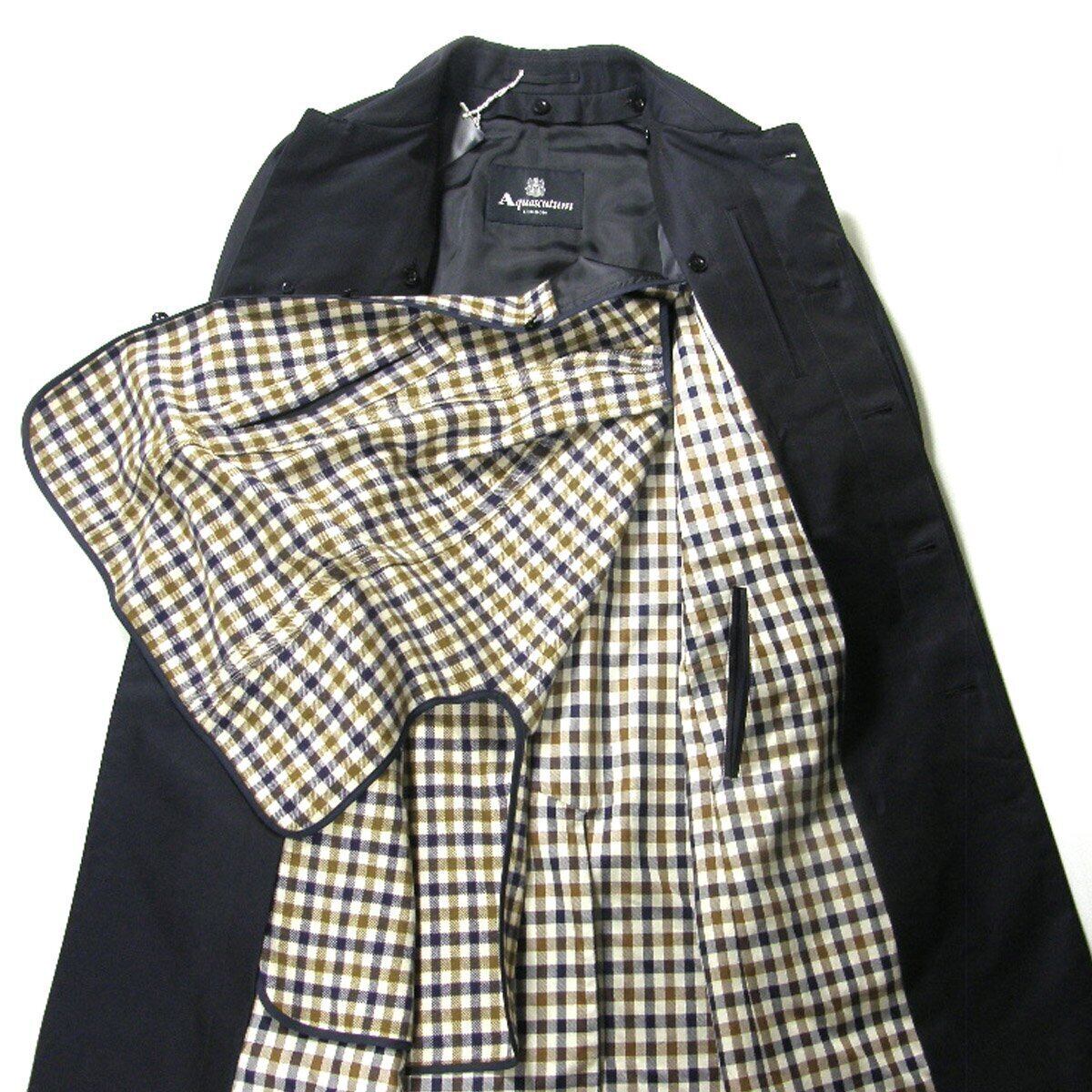 クラブチェック(アクアスキュータムのチェック)が印象的なカシミヤ混のライナー付き、ステンカラーコート