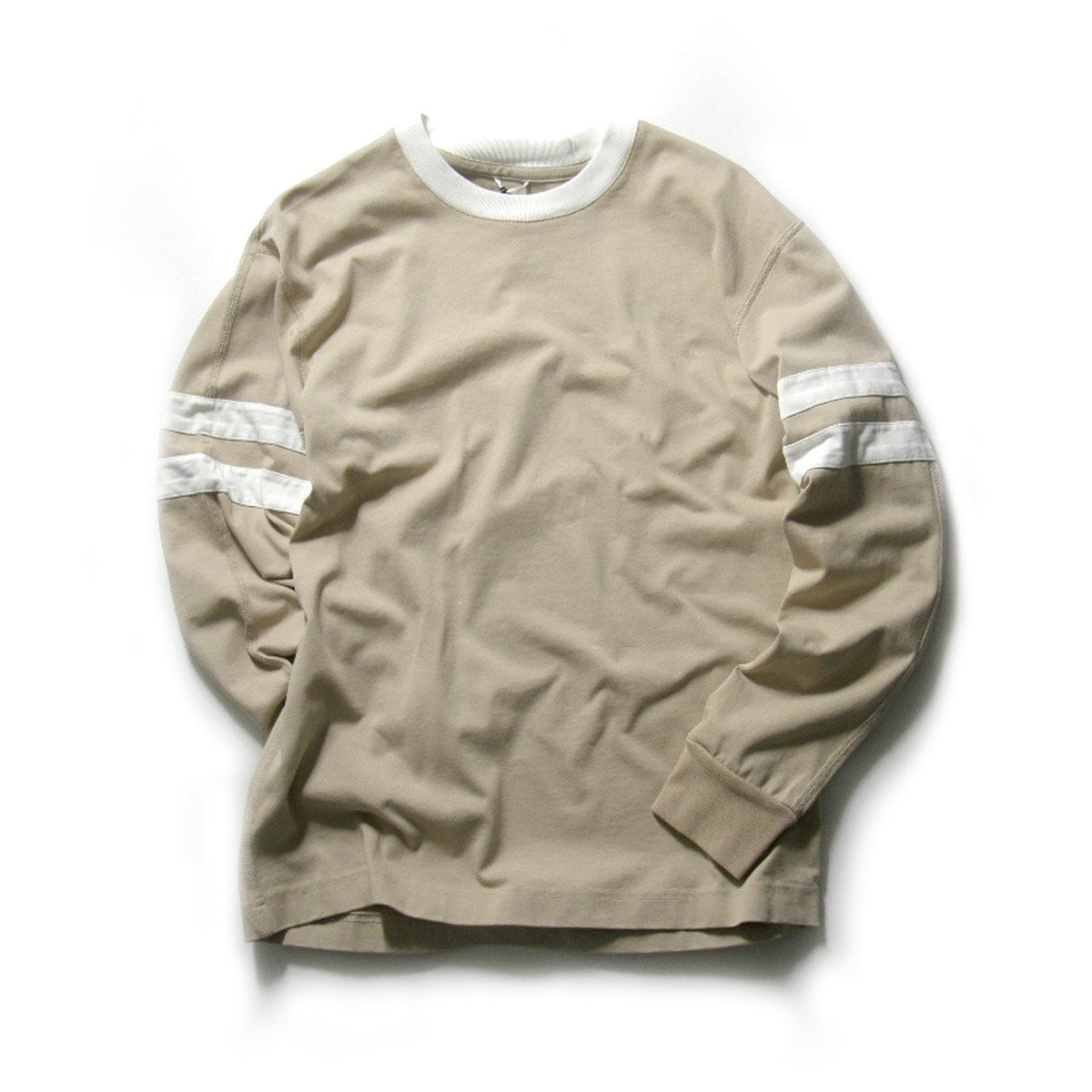 ミッドウェイトのジャージー素材にストライプのセミラグランスリーブをあしらったシーズンTシャツ