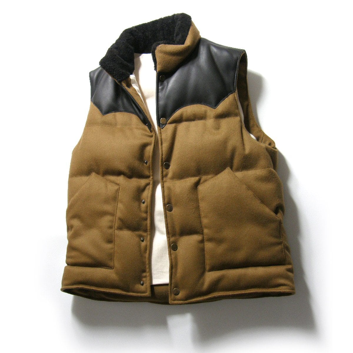 CINQUANTA × SHIPS / チンクワンタ × シップス ラムレザー ムートン ウール ダウンベスト イタリア製 チンクアンタ キャメル | 秋冬