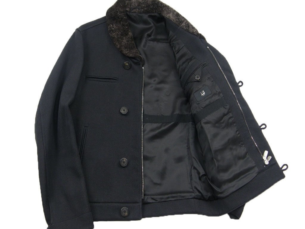 dunhill / ダンヒル 毛皮付き ブルゾン イタリア製 アウター ダブルジップ ボタン ブラック 黒 | 秋冬