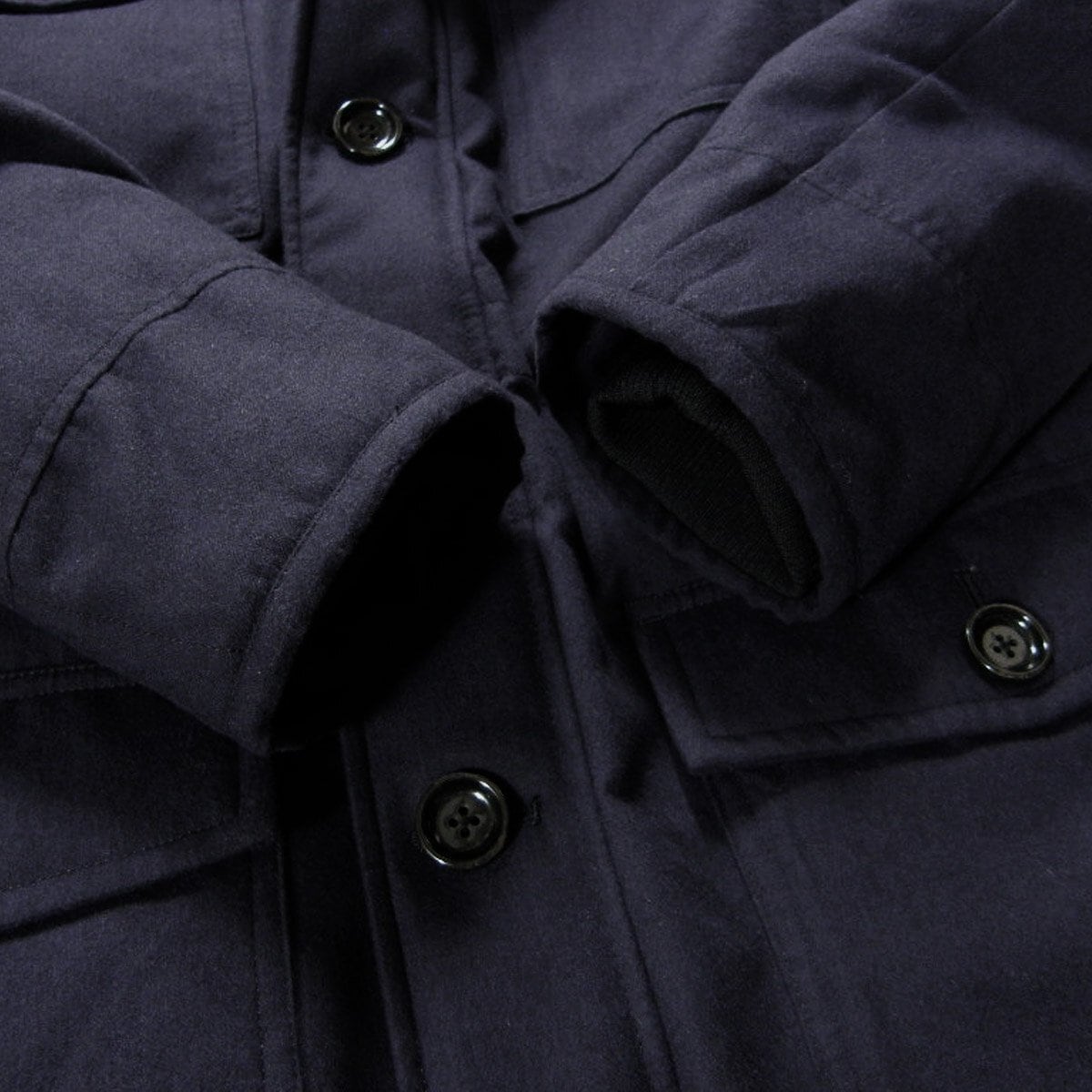 ・表下左右にボタン付きフラップポケット(サイドにもポケットあり、サイドポケット内に起毛あり)