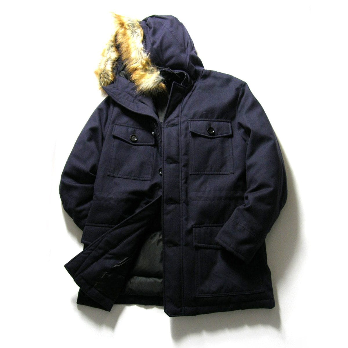 ・フード付き(取り外し不可、ファーは取り外し可能、ドローコードあり)