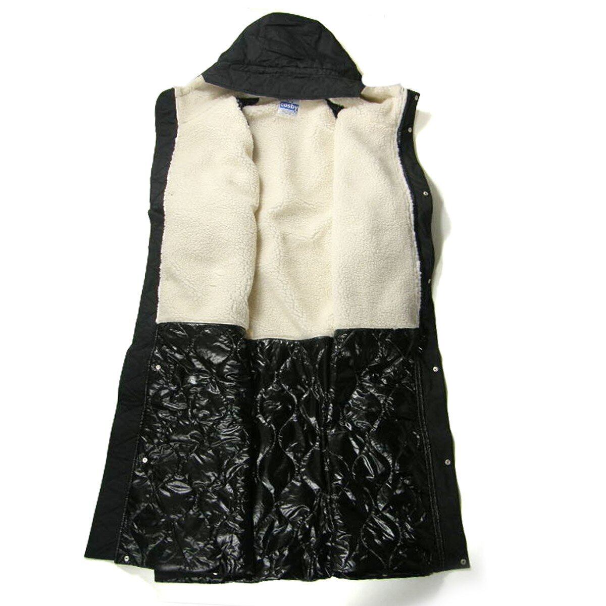 裏側はフード部分まである裏ボア仕様で、中綿入りのキルティングの切り替えになっており、保温性能も抜群です