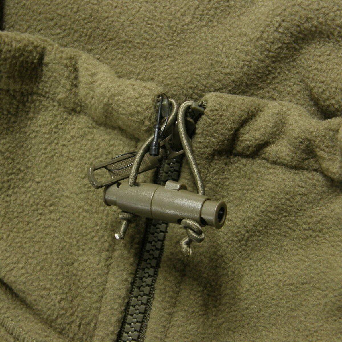 ジップアップを首元まで閉め、ドローコードで絞ると保温性抜群