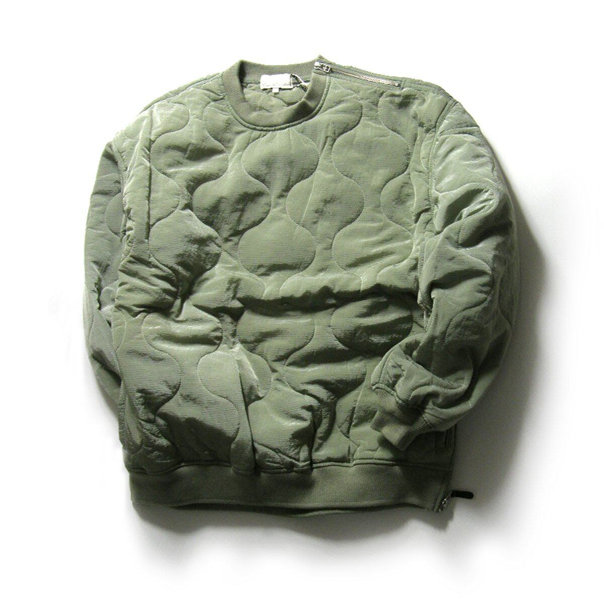 ミリタリーライクな「ひょうたんキルト」を使用したリップストップナイロン生地のクルーネックプルオーバー