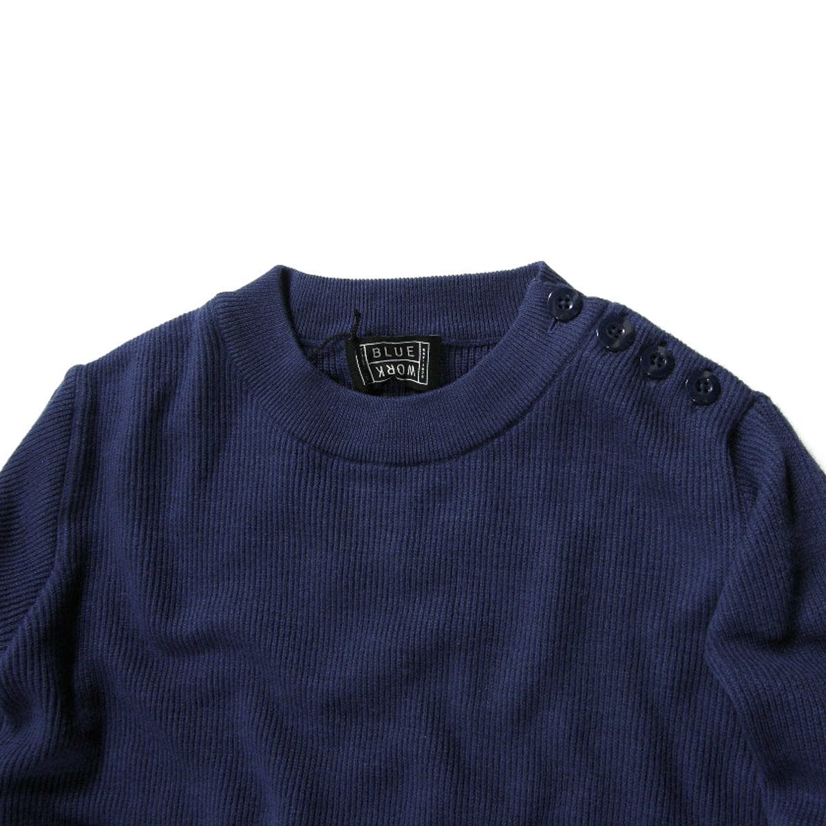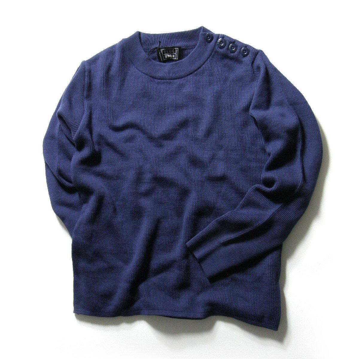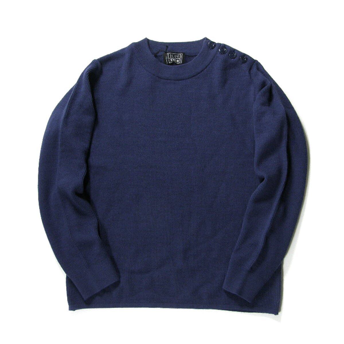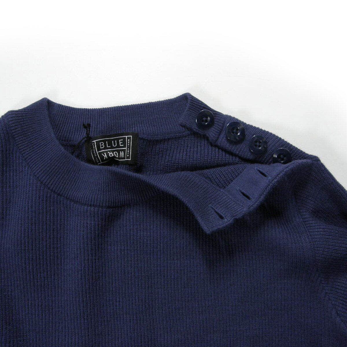 TOMORROWLAND BLUE WORK / トゥモローランド ブルーワーク 軽量 ショルダーボタン ニット クルーネック セーター ネイビー | 春 秋冬