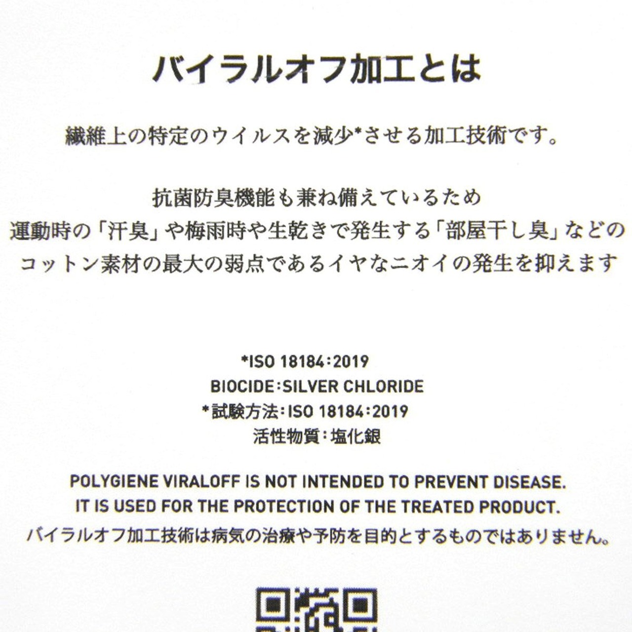 抗菌防臭機能も兼ね備えているため運動時の「汗臭」や梅雨時の生乾きで発生する「部屋干し臭」などのコットン素材の最大の弱点であるイヤなニオイの発生を抑える。