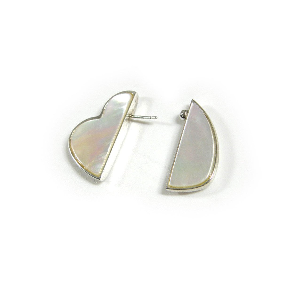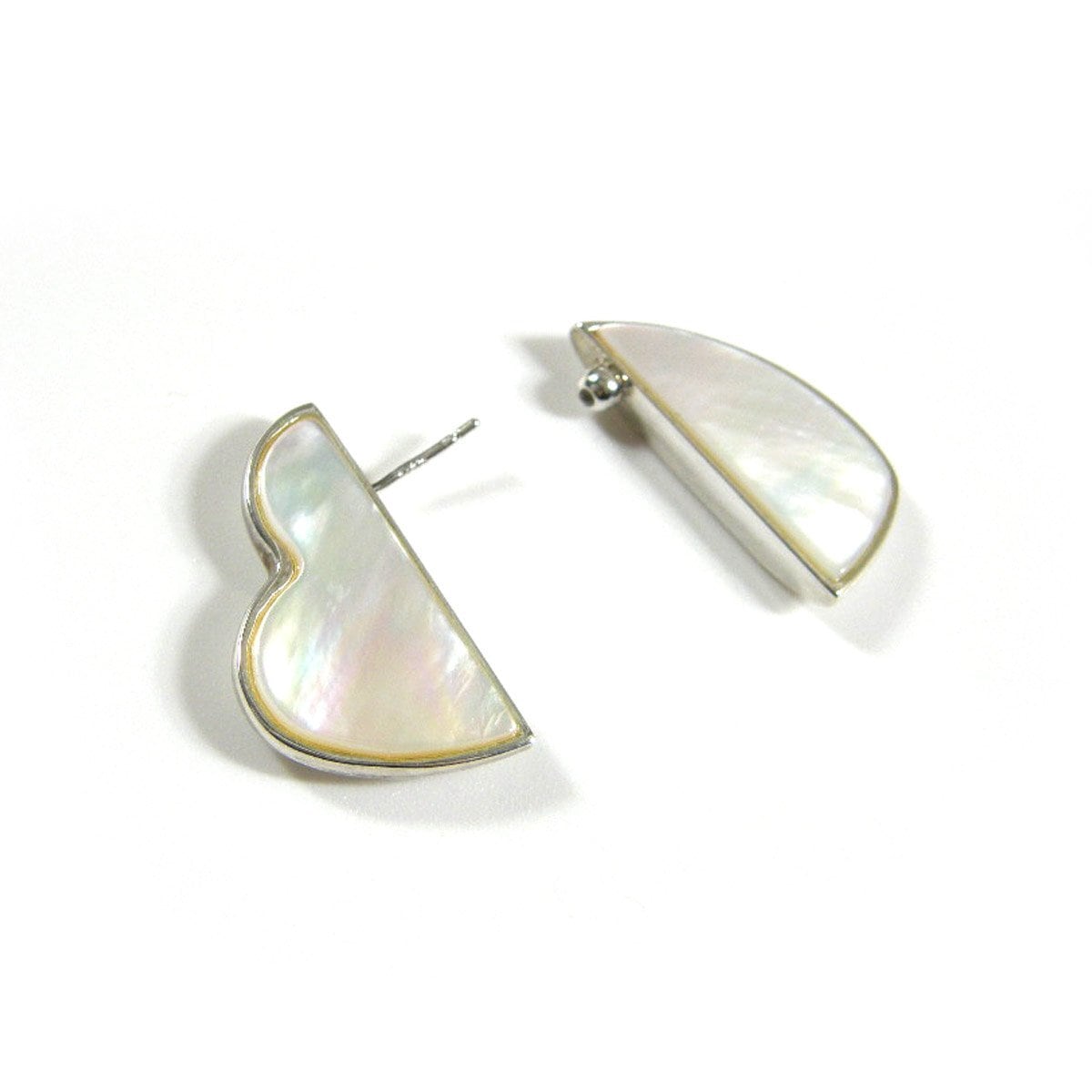 耳を挟む個性的なデザインで動くたびに白蝶貝独特の光沢が表情を変えます