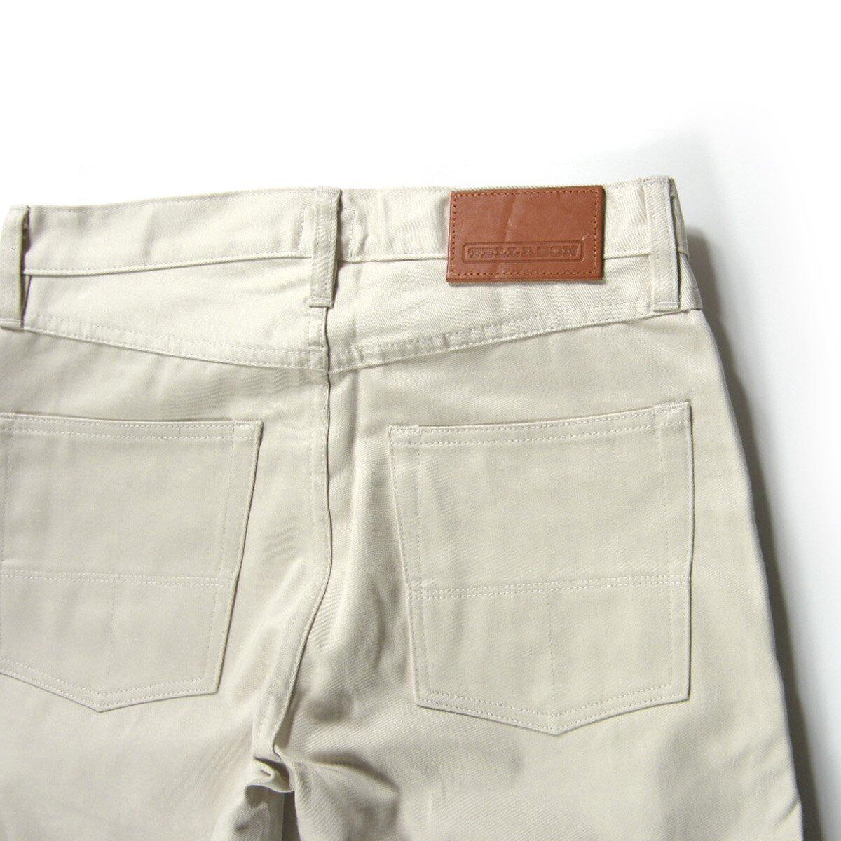 TELLASONデニムはリーバイスXXの生地を生産していたCone Mills(コーンミルズ社)ホワイトオーク工場にてテラソン専用に作られた生地を裁断し、レザーパッチはポートランドのレザーブランドTANNER GOODS(タナーグッズ)によるハンドメイド、リベットはケンタッキーのメーカーによるアンティークカッパーを使用。