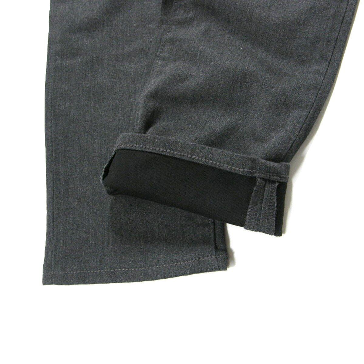 太ももにかけてリラックスフィット、ひざ下はテーパード