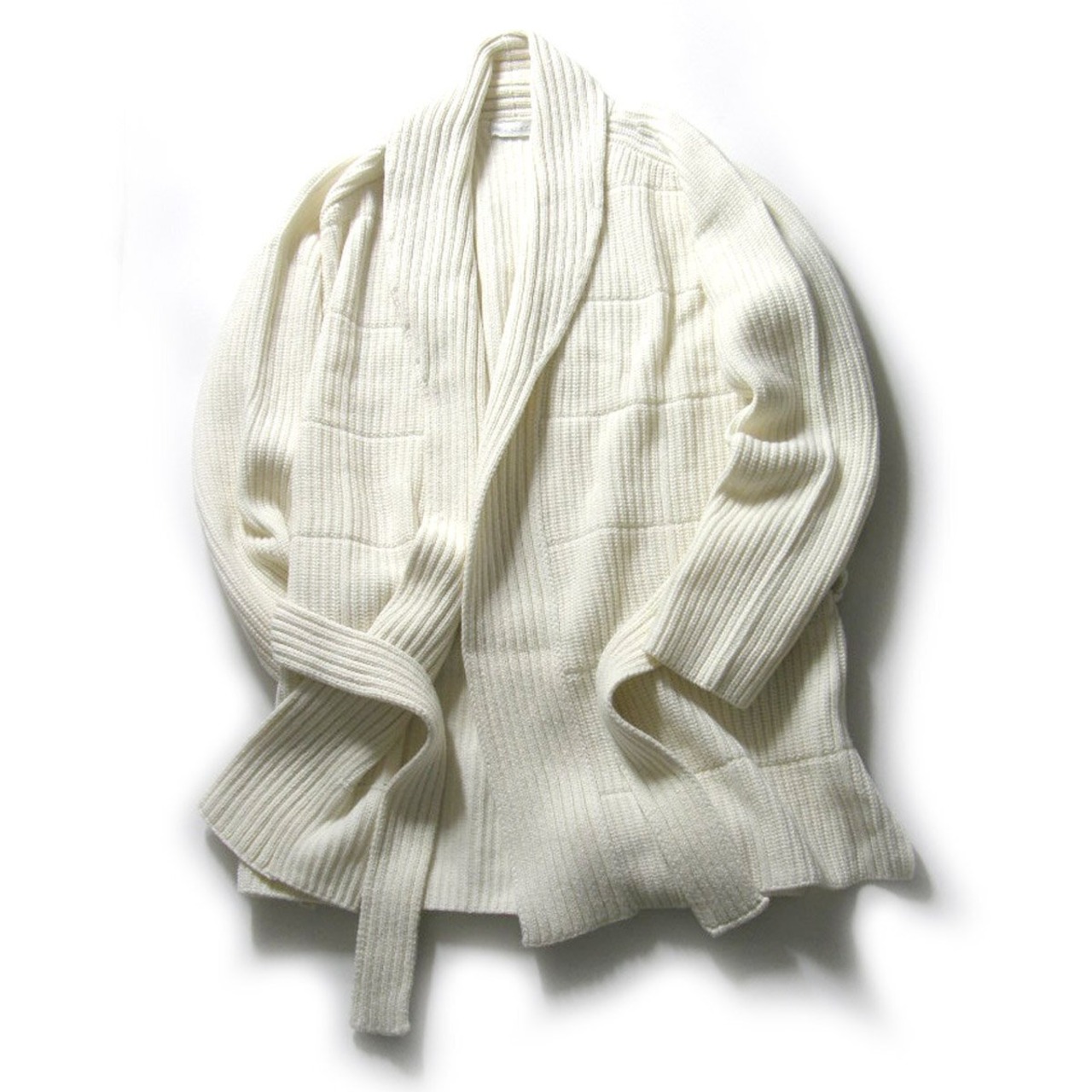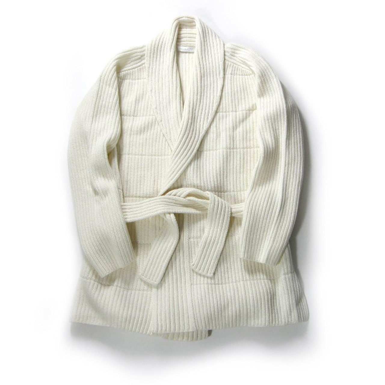 Cruciani × BEAMS / クルチアーニ × ビームス カシミヤ ウール ニットガウン イタリア製 ショールカラー カーディガン オフホワイト | 秋冬