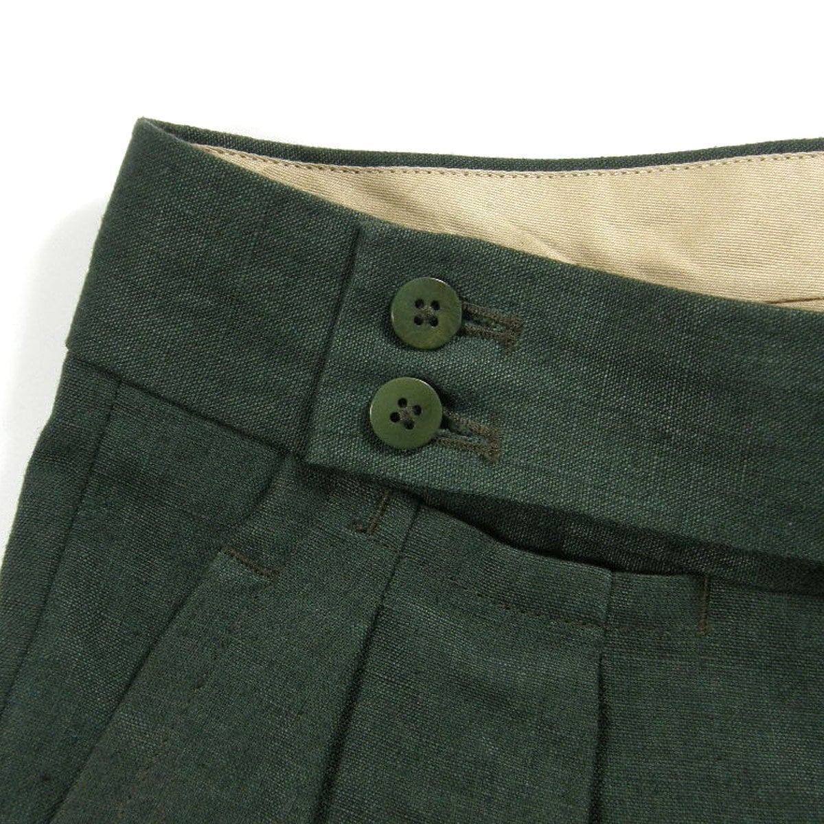 Salvatore Piccolo / サルヴァトーレピッコロ リネン ハーフパンツ イタリア製 ベルトレス グルカパンツ ショートパンツ 短パン ショーツ グリーン | 春夏