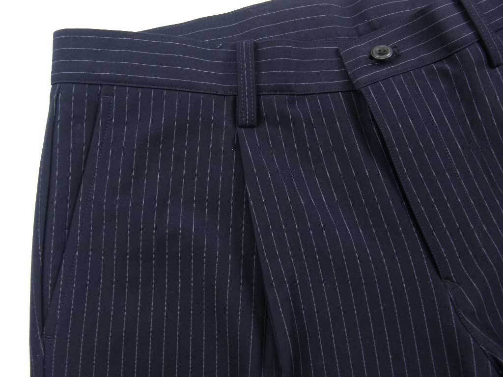 穿きやすいジャージストライプ素材のワンプリーツ入りパンツ。