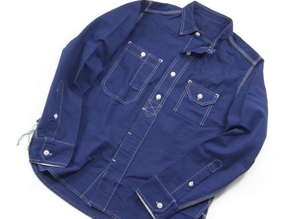 襟は20世紀初頭のワークシャツに見られた非常に特殊なディティールのカラーステイを配し、チンストラップも装備。