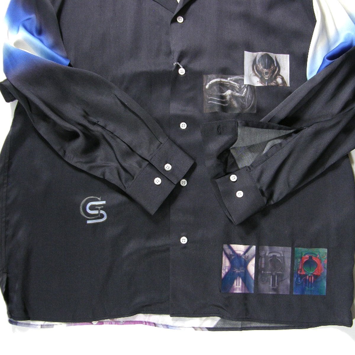映画「エイリアン」のクリーチャーデザイナーとして知られるH.R.GIGERと現代アーティスト空山基氏による二人展「H.R.GIGER×SORAYAMA」を記念して作成したオープンカラーシャツ