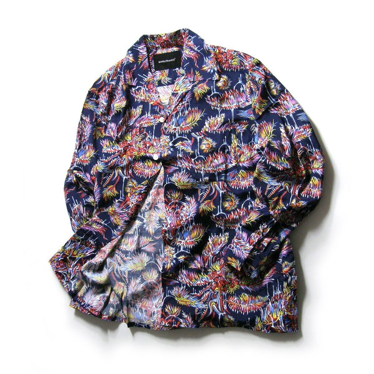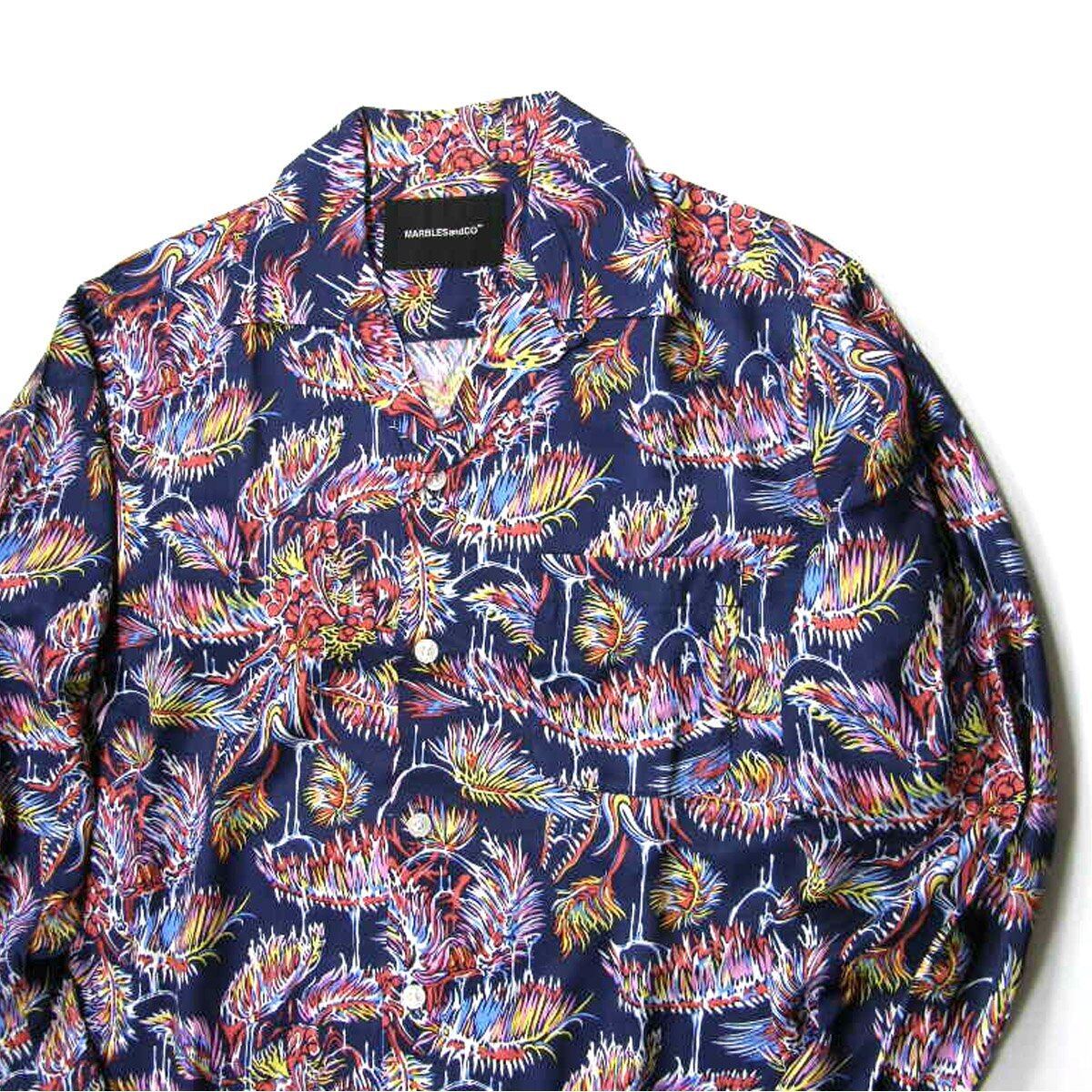 Marbles × YOJI SHIBAI / マーブルズ 食虫植物 長袖シャツ 日本製 レーヨン アロハシャツ オープンカラー シャツ カニバルフラワー Cannibal flower 食虫植物 紺 ネイビー TMT | オールシーズン