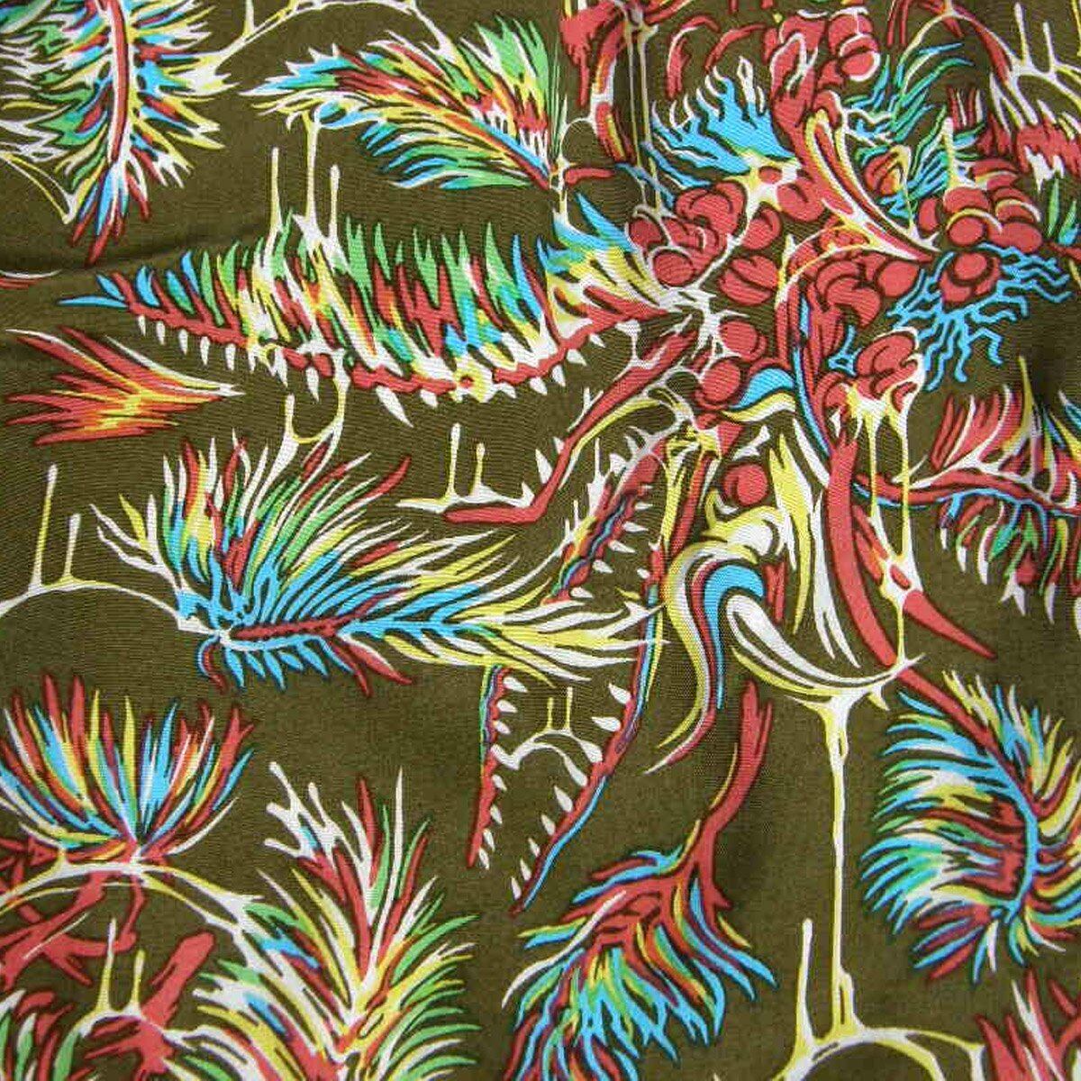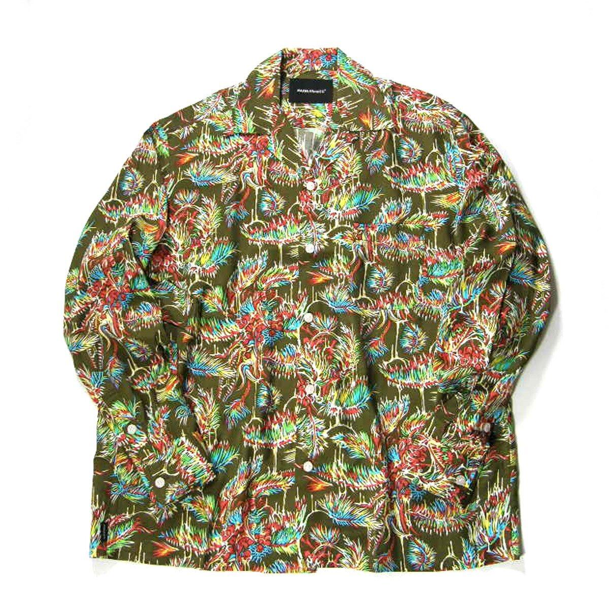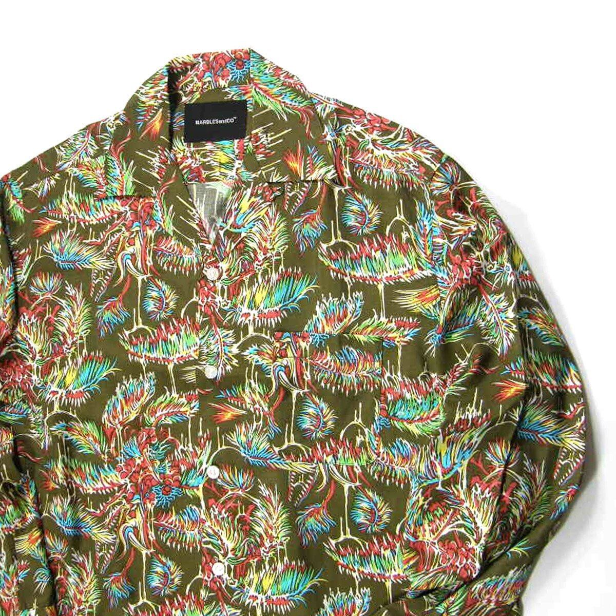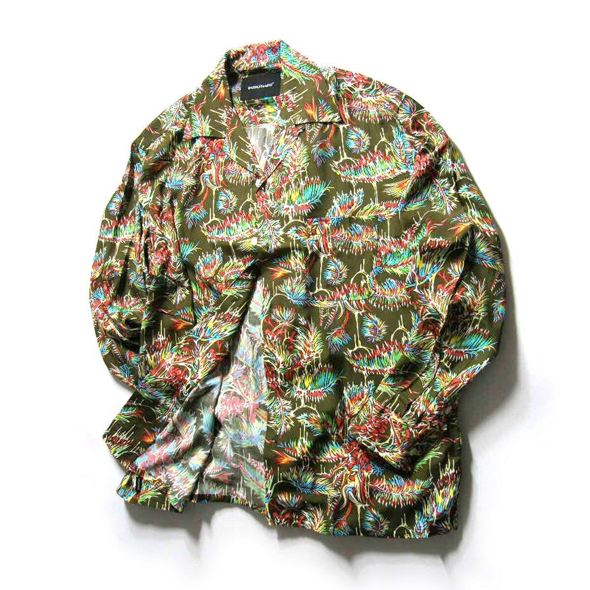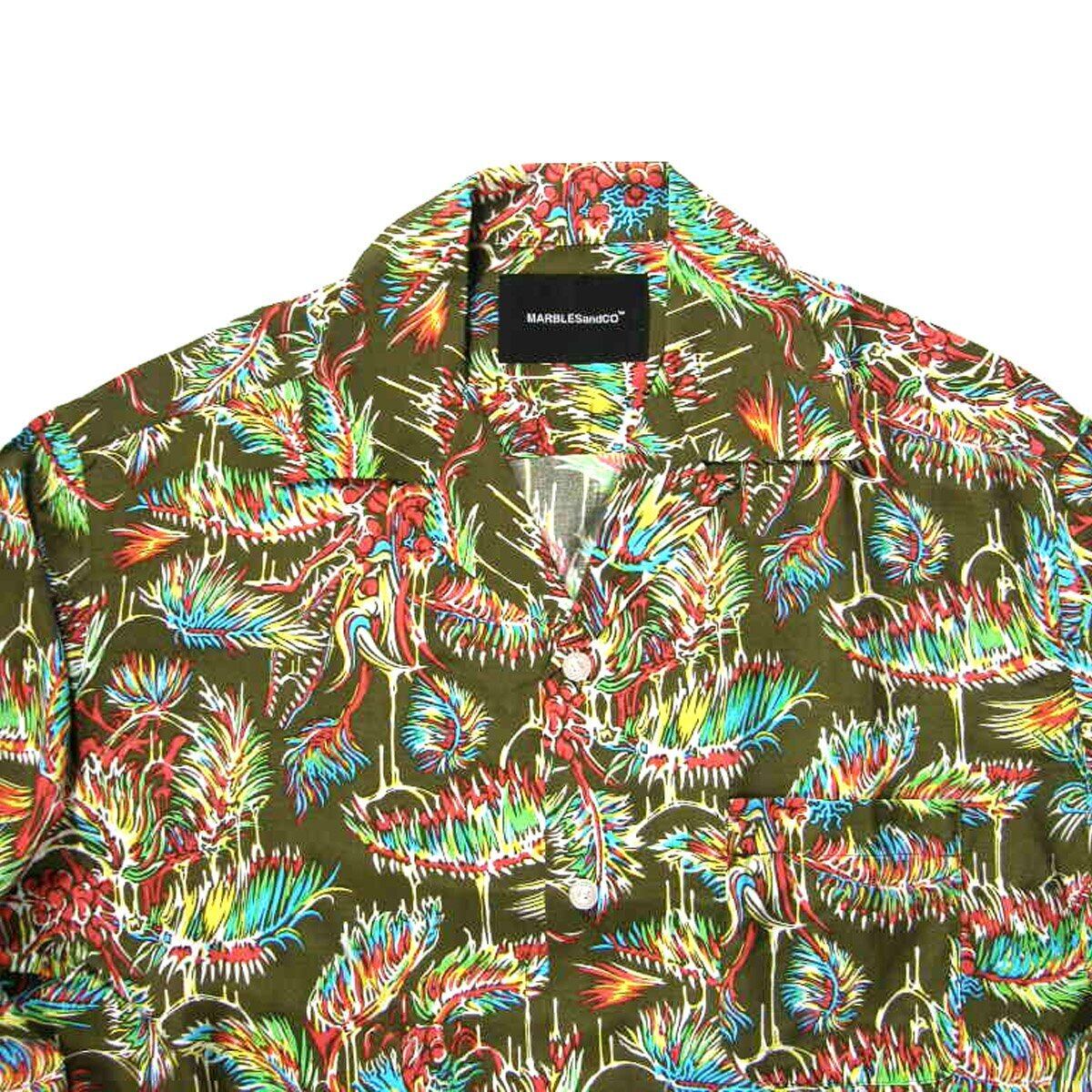 Marbles × YOJI SHIBAI / マーブルズ 食虫植物 長袖シャツ 日本製 レーヨン アロハシャツ オープンカラー シャツ カニバルフラワー Cannibal flower 食虫植物 オリーブ TMT | オールシーズン
