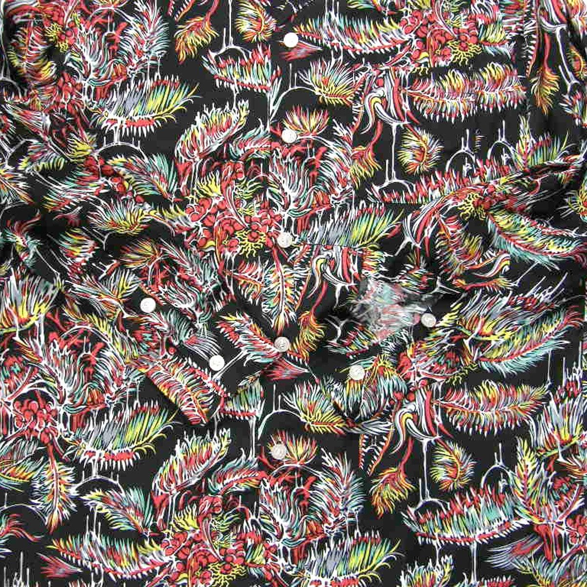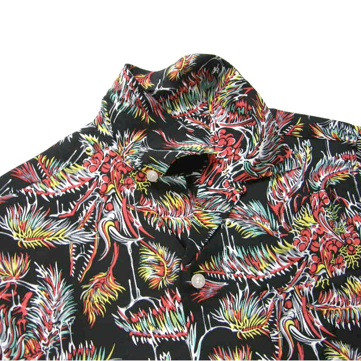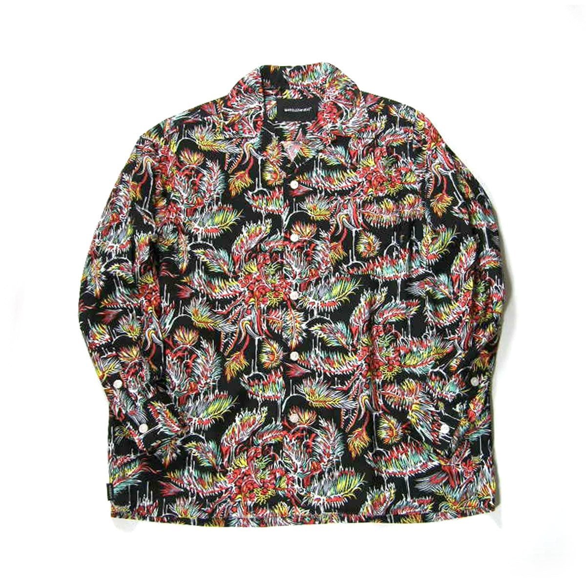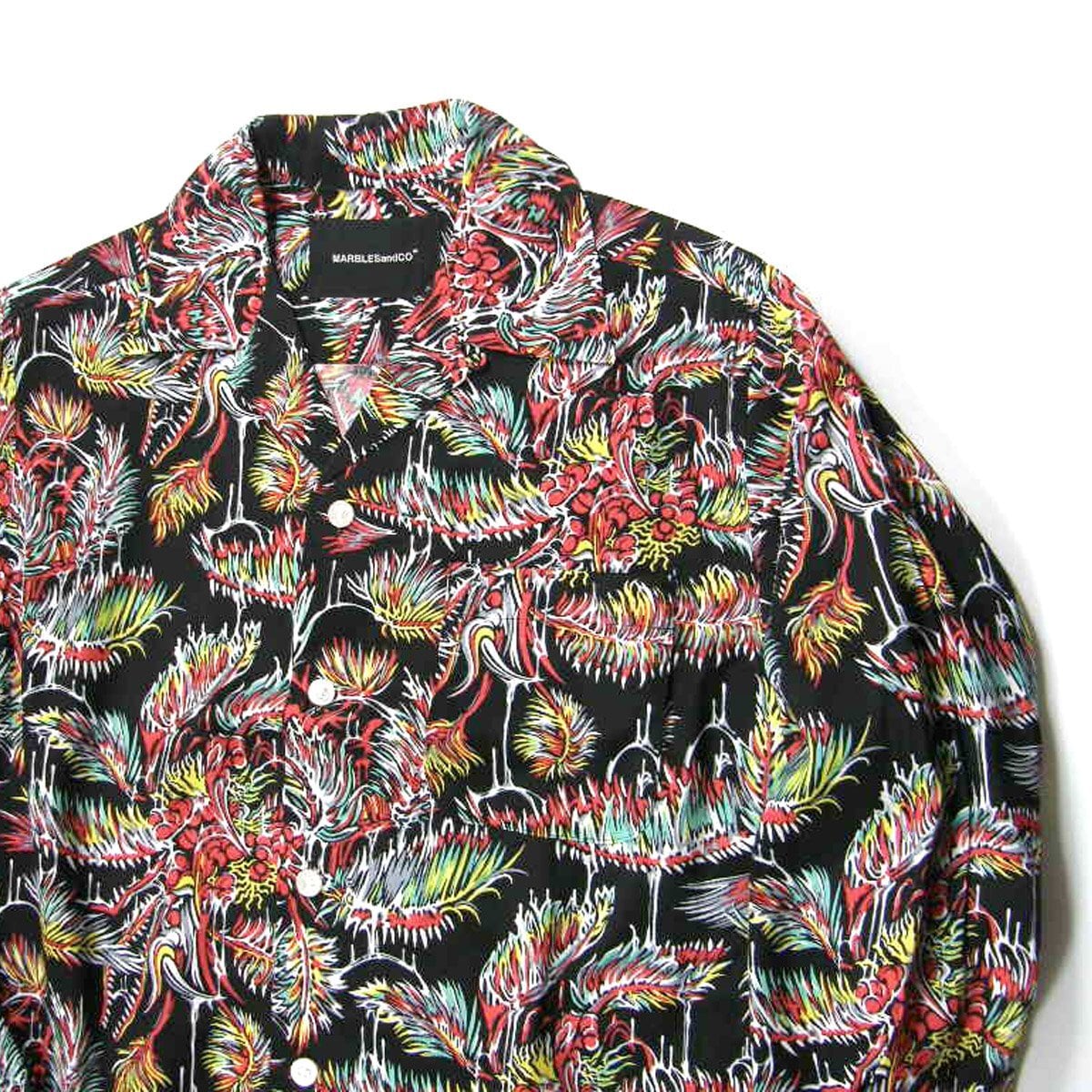 Marbles × YOJI SHIBAI / マーブルズ 食虫植物 長袖シャツ 日本製 レーヨン アロハシャツ オープンカラー シャツ カニバルフラワー Cannibal flower 食虫植物 ブラック TMT | オールシーズン