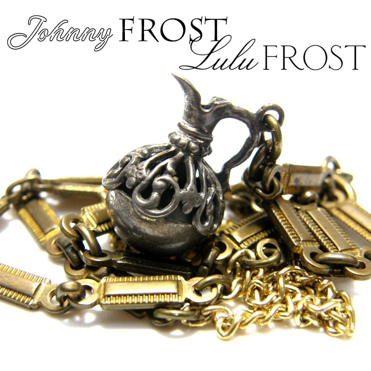 ピッチャー(水差し)のペンダントトップに、デザインのあるチェーンが印象的