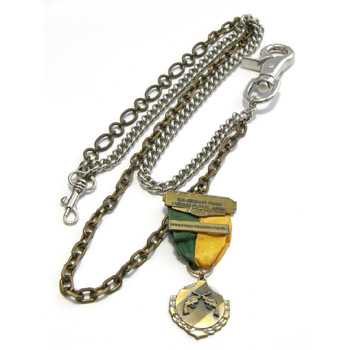 BLACKINTON(ブラッキントン)のLA GRANGE PARK POLICE PISTOL ASSN. 1956 EXPERT CLASS 2nd.のポリスメダルピンバッジを組み合わせたウォレットチェーン