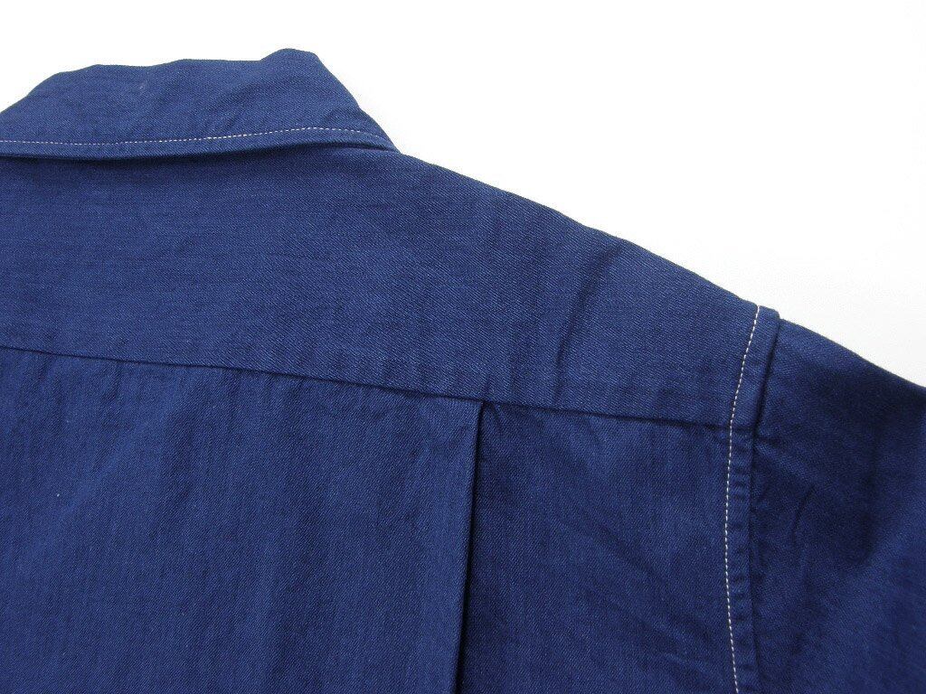 ヨーク、アームホール、袖口はデニムに良く映えるホワイトステッチでパッカリングを強調した縫製も特徴