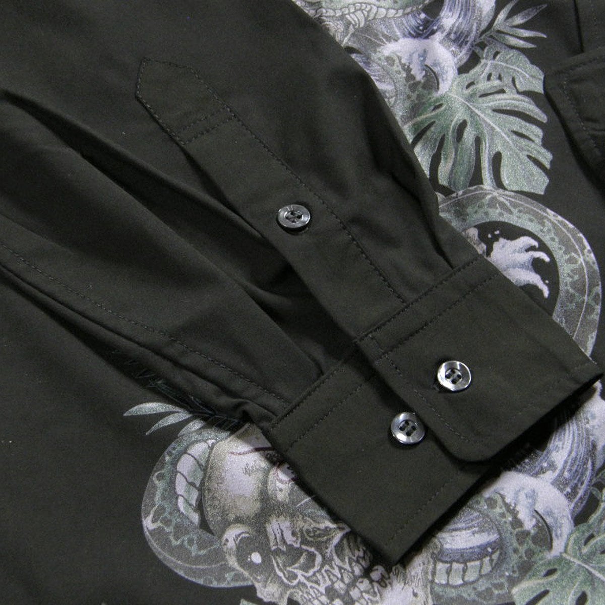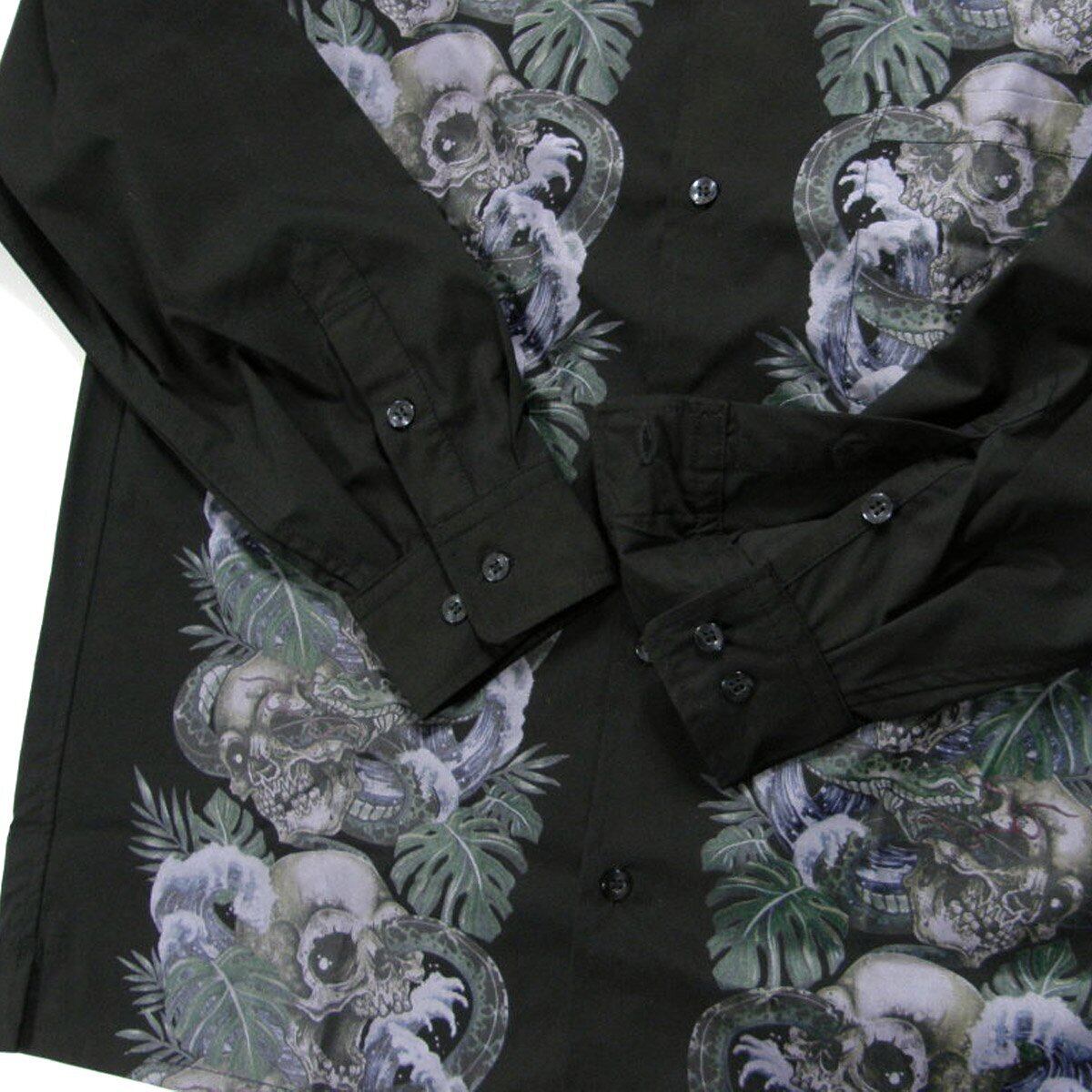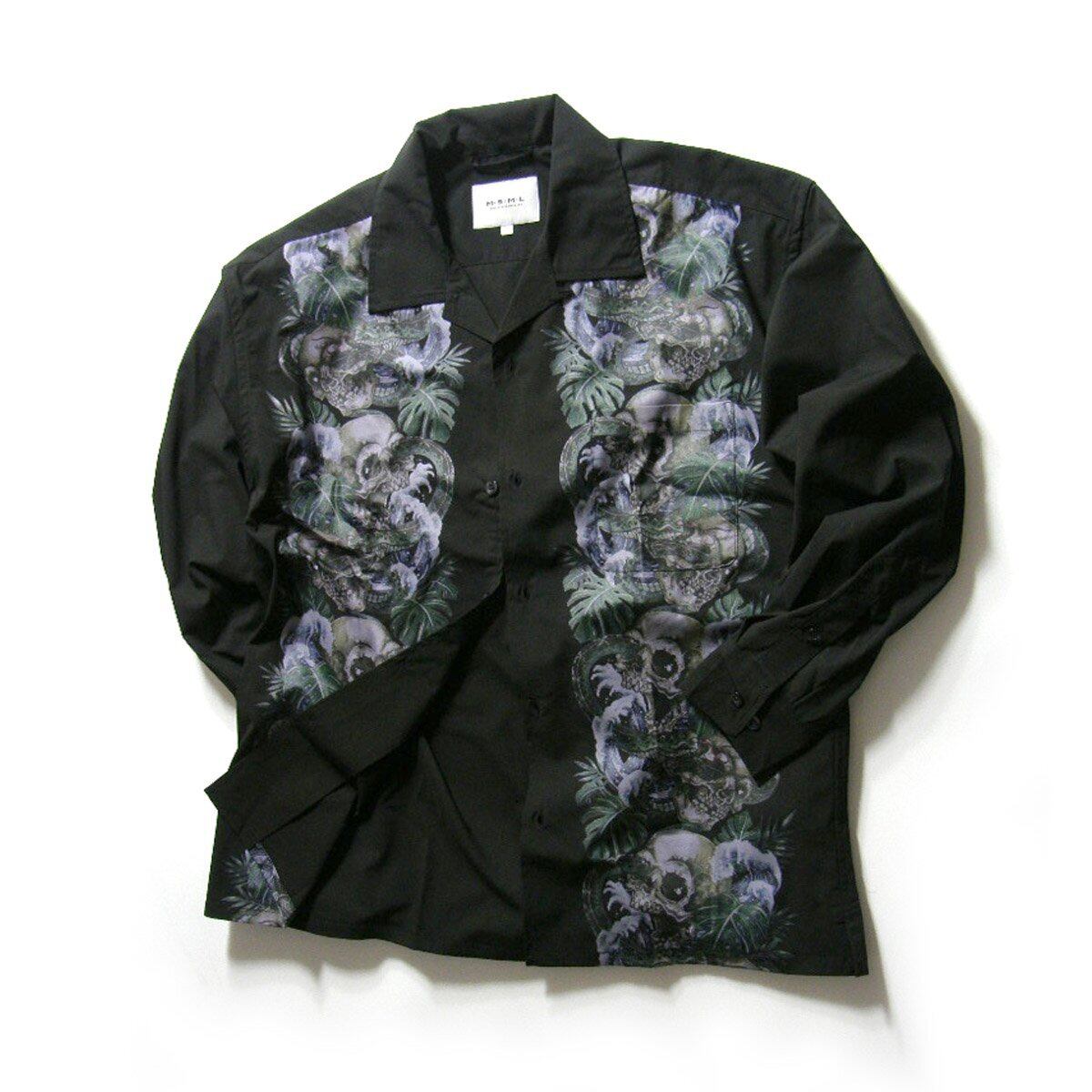 MSML / エムエスエムエル スカル 蛇 オープンカラー ストレッチ 長袖シャツ ロングスリーブ シャツ CRIMIE クライミー CHORD NUMBER EIGHT コードナンバーエイト ブラック | オールシーズン