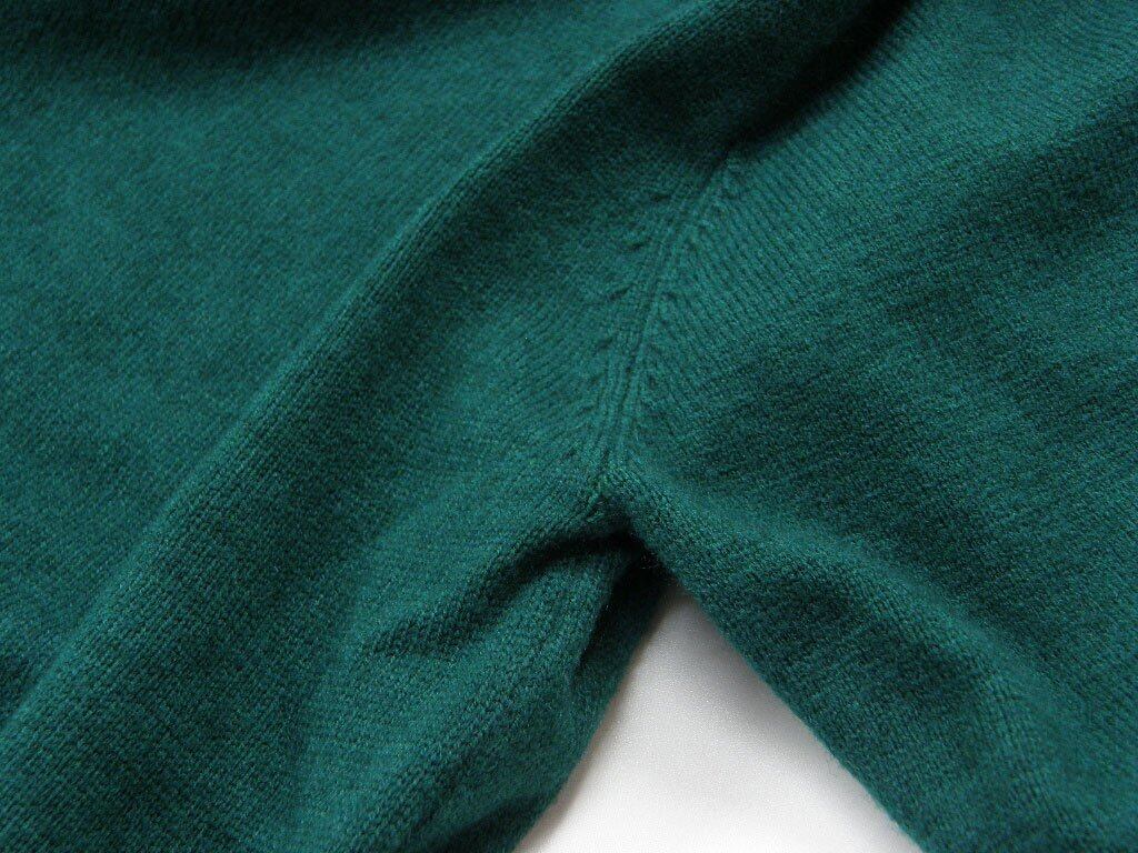 ふくらみを抑えたニット素材で、重ね着でも、一枚でも着もしやすく、寒暖差のある季節にも重宝します