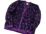 モヘア調アクリル糸、5ゲージ ダブルジャガード編みで度目を詰めて厚さを出し、レオパート柄をジャガードで表現。