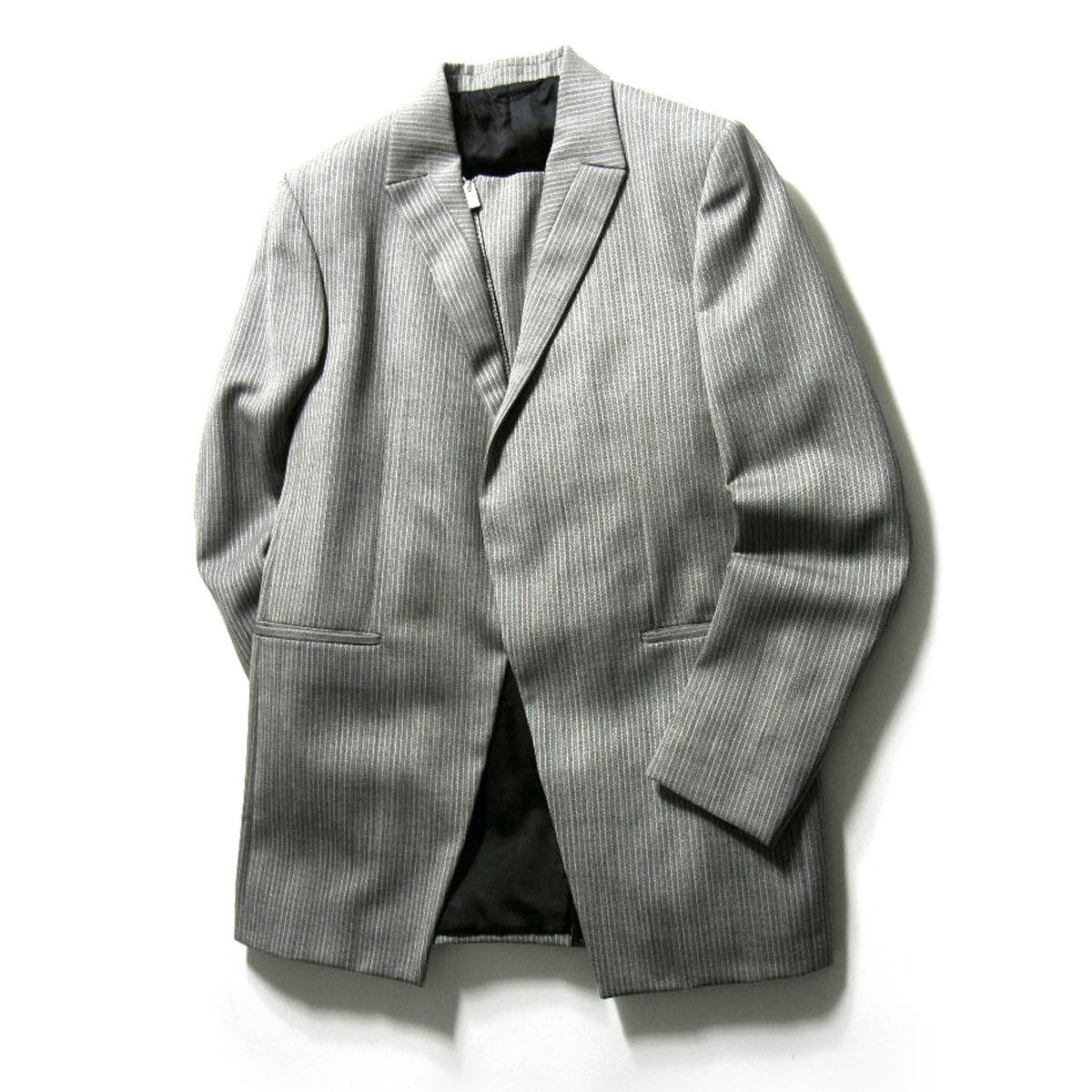 1017 ALYX 9SM / アリクス ロング ジャケット イタリア製 コート ロングジャケット ラペル デザイン グレー ストライプ | 秋冬