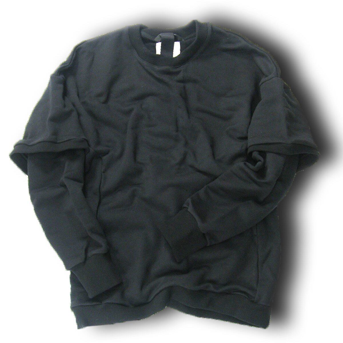 レイヤードされたダブルスリーブ、クルーネックライン、フロントポケット、リブ編みのサムホールを備えた、ミニマルで繊細なディテールを備えた手間のかからないクラシックなスタイルです
