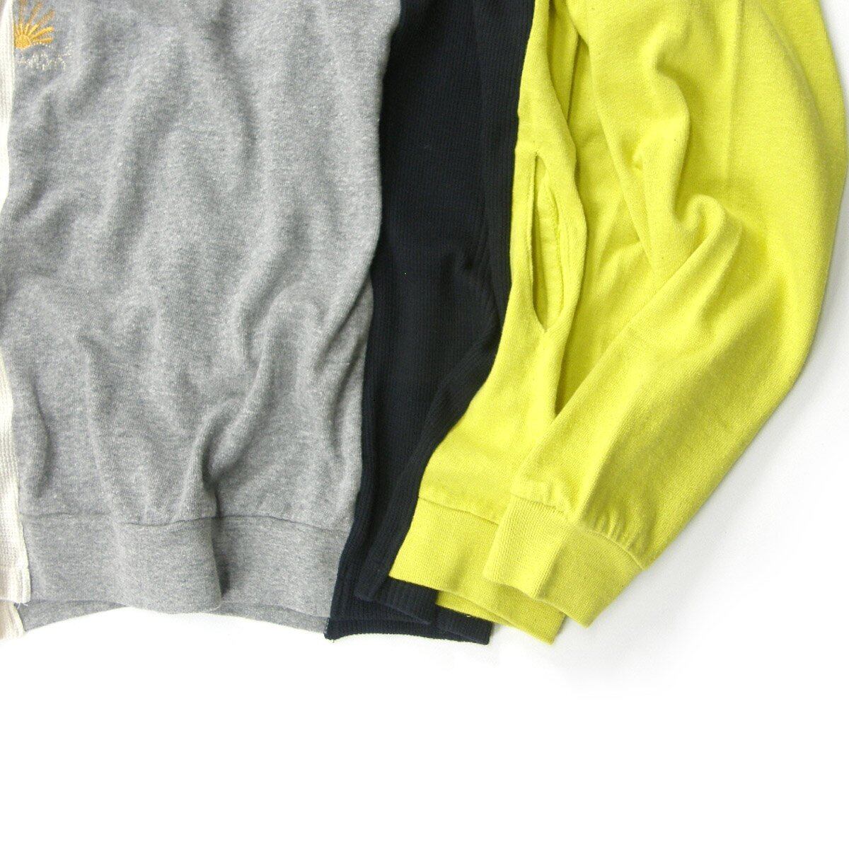 身頃の両サイドにワッフルや別のニット生地をはさむことで見幅の広いオーバーシルエットを提案。