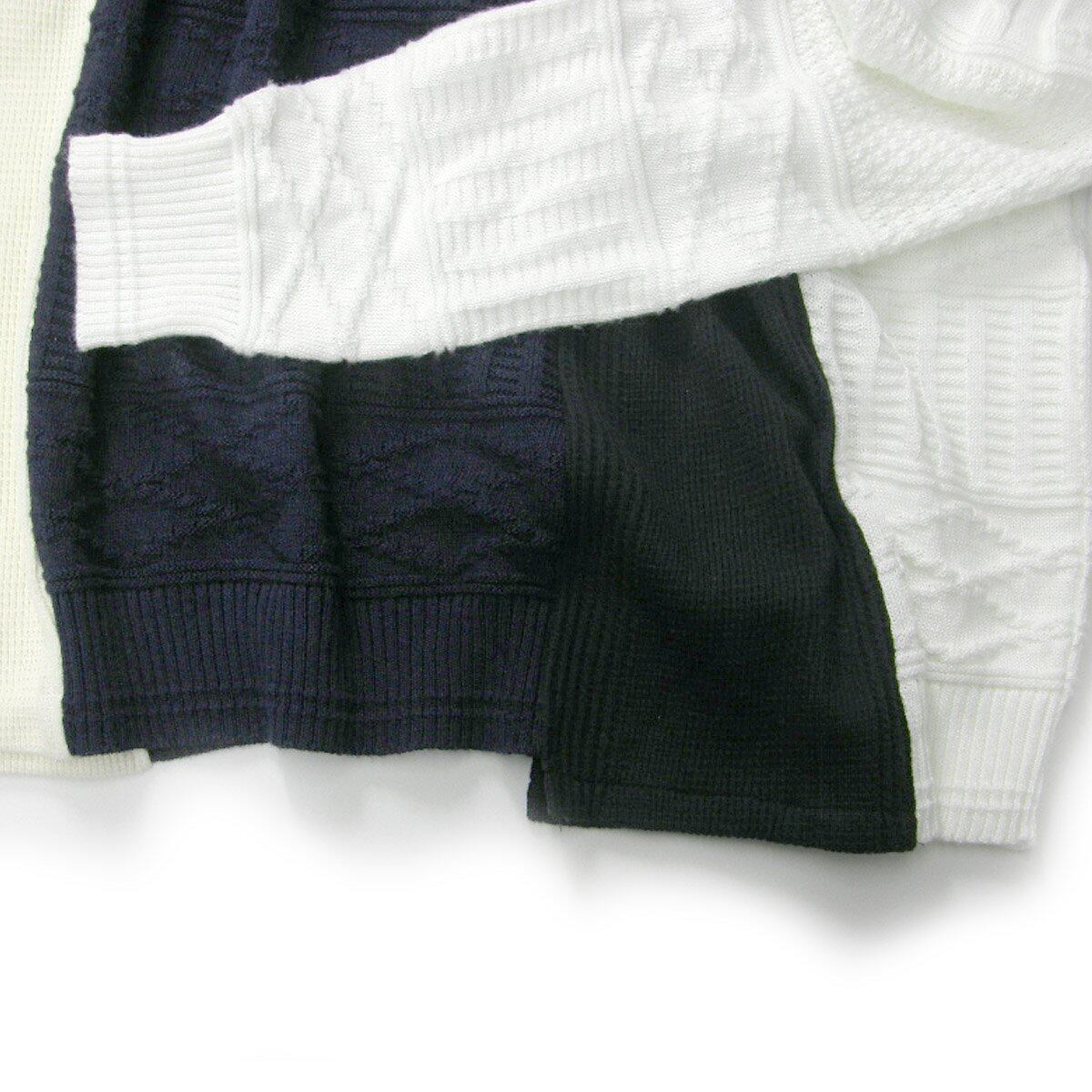 身頃の両サイドにワッフルや別のニット生地をはさむことで見幅の広いオーバーシルエットを提案。