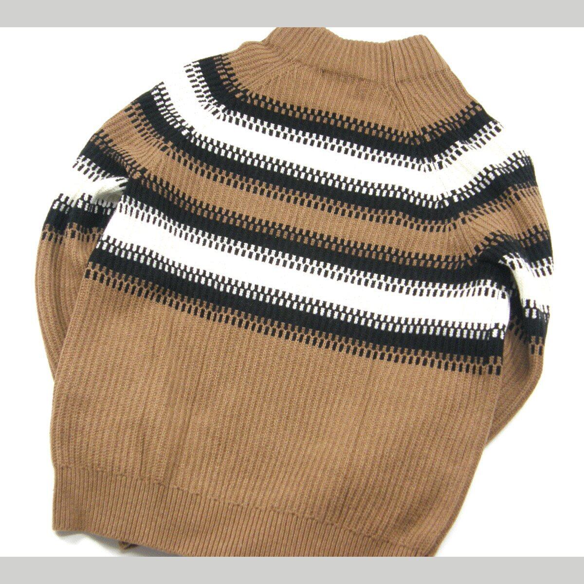 境界を滲ませるように重ねたストライプパターンと温かみのあるレトロカラーが目を引くブラードストライプ モックネックニット。