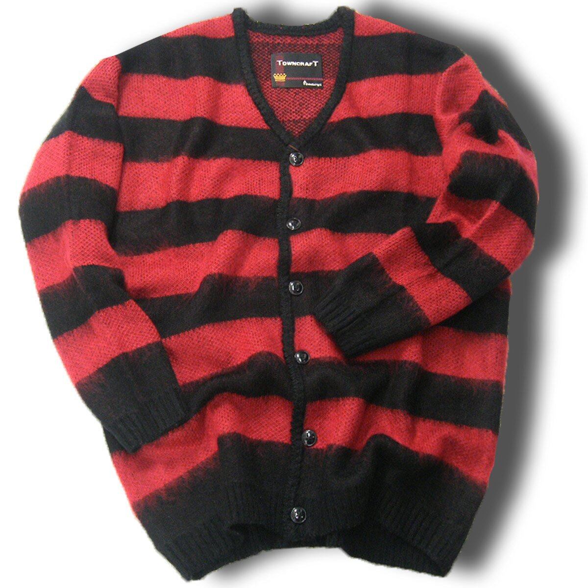 TOWNCRAFT / タウンクラフト ジャガード シャギーニット カーディガン ニット シャギー加工 ボーダー 黒 赤 J.C.Penney カートコバーン ニルヴァーナ | 秋冬
