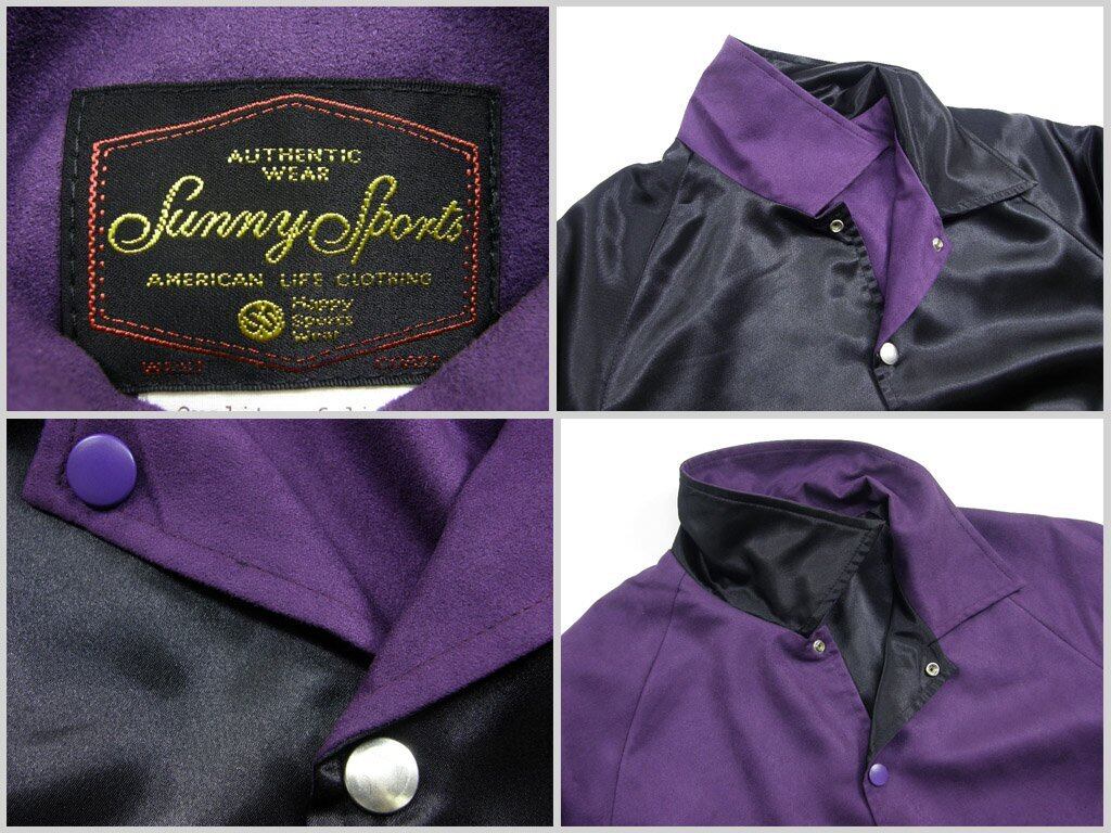 片側は雰囲気のあるフェイクスエード、もう一方は光沢のあるソリッドなブラックのサテン地を使用したリバーシブルで着用可能なコーチジャケット。